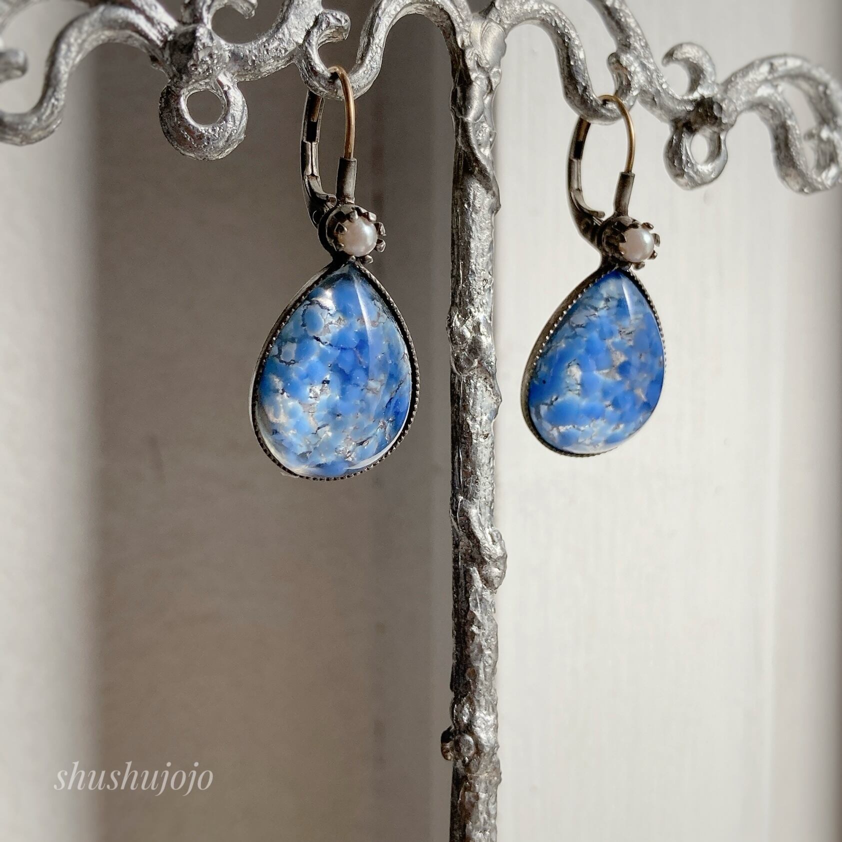 パール調のワンポイントが可愛らしい、ヴィンテージガラスのピアスです。