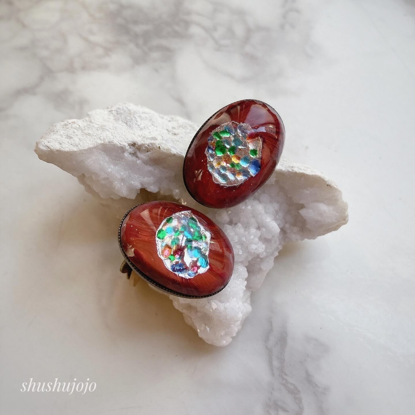 ぷっくりとした大ぶりなガラスが目を引くイヤリングです。