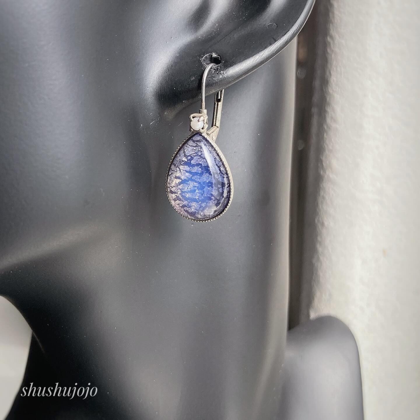 パール調のワンポイントが可愛らしい、ヴィンテージガラスのピアスです。