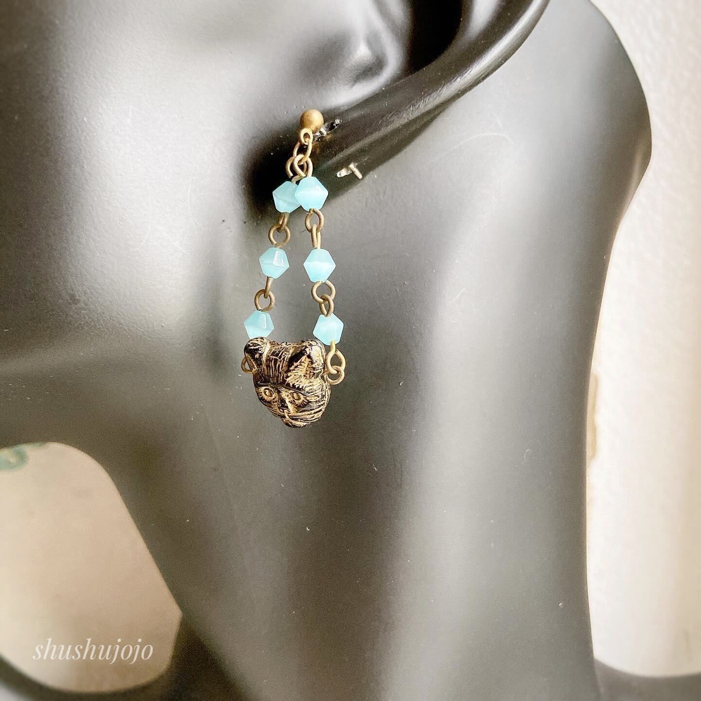 A ターコイズブルーの猫ちゃん×真鍮ボール