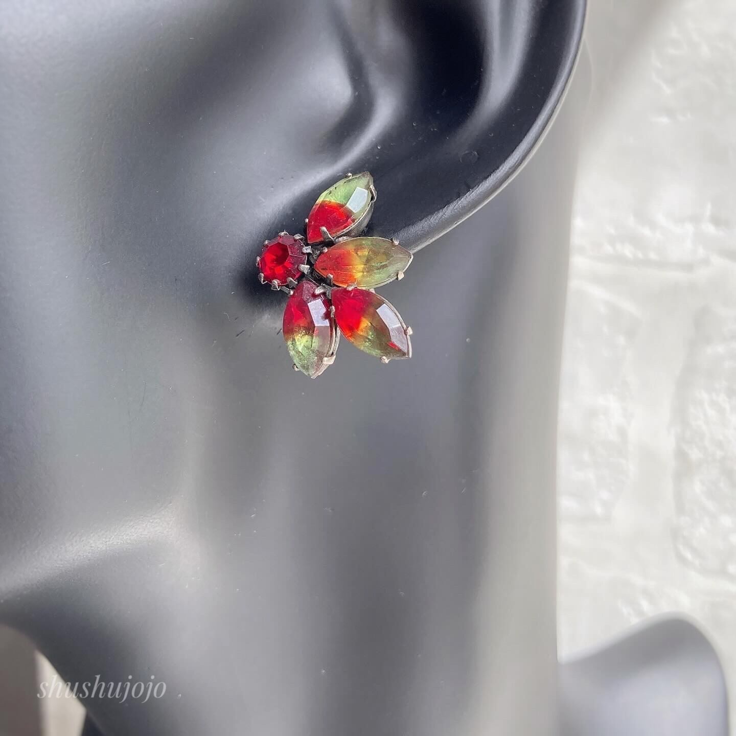 パキッとした鮮やかな赤色と、黄緑色のバイカラーガラスが