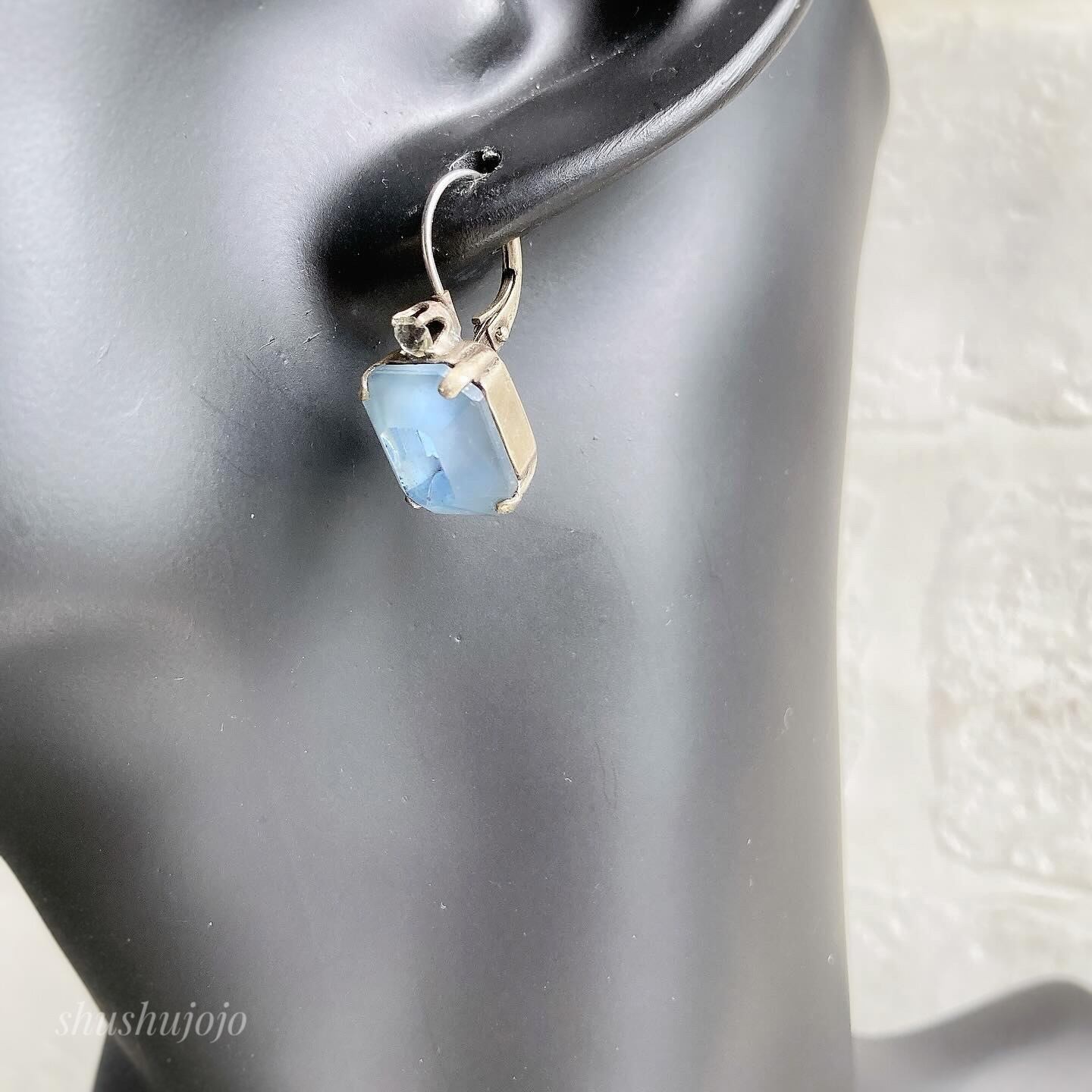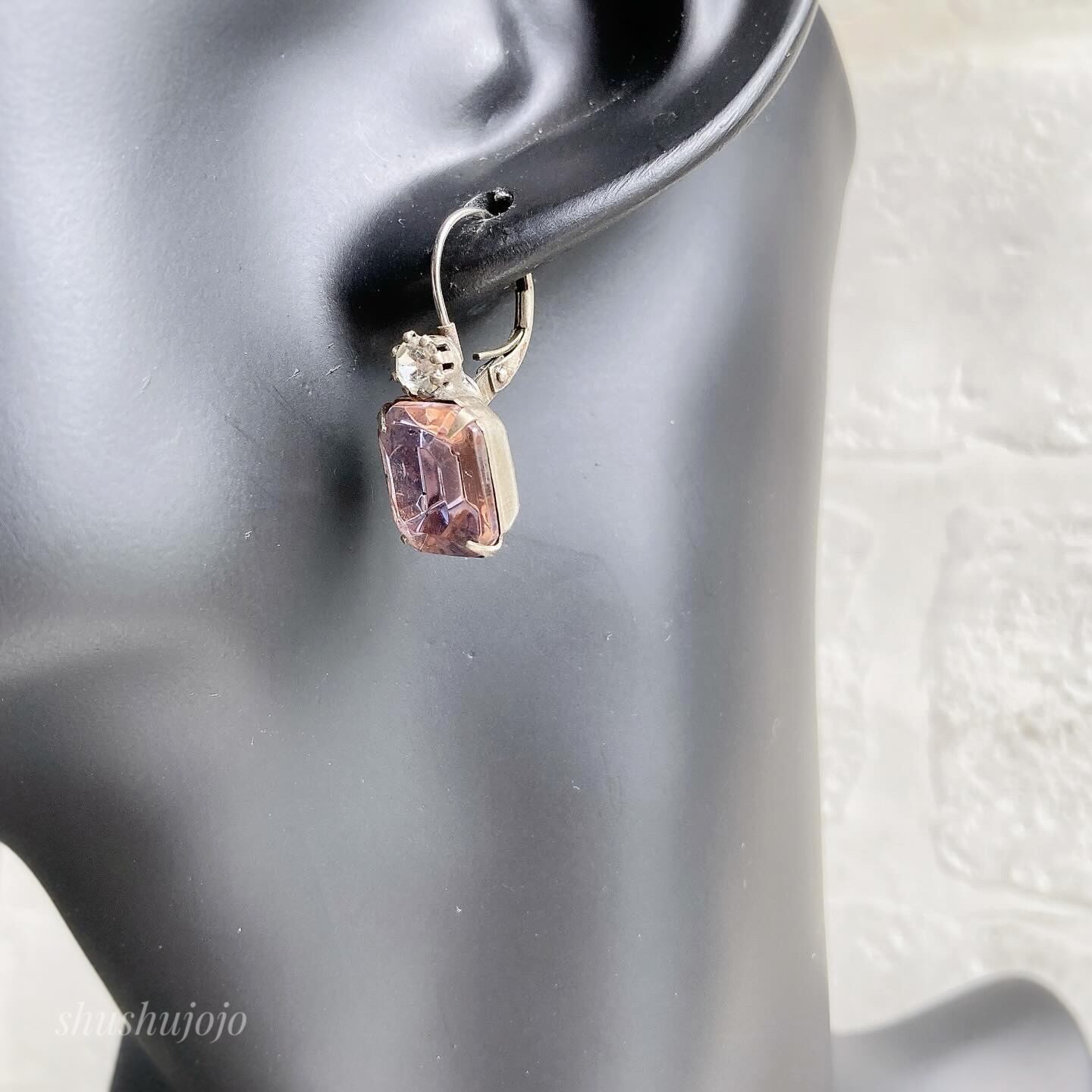 シンプルながら存在感のあるヴィンテージガラスのピアスです。