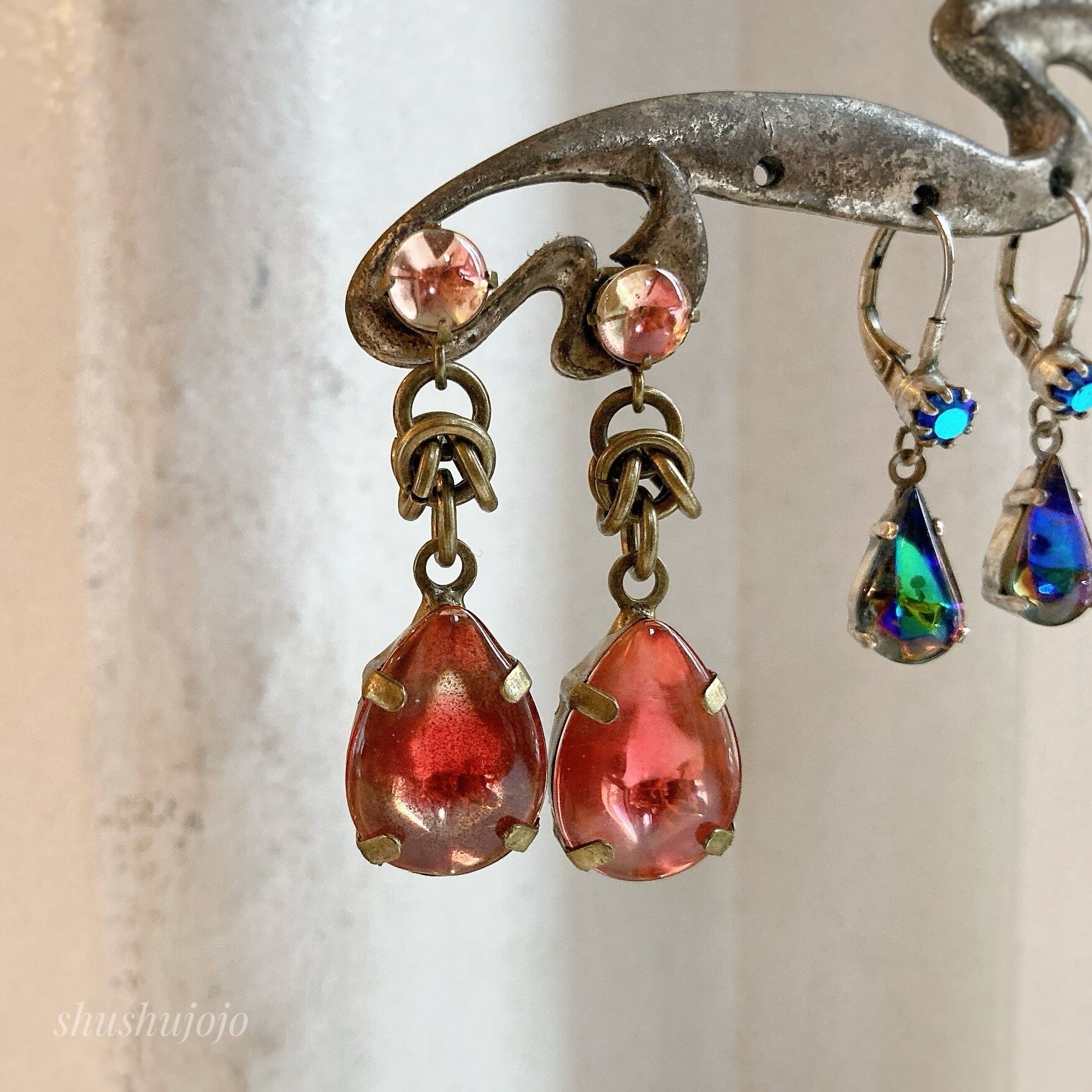 ヴィンテージガラスのピアスです。