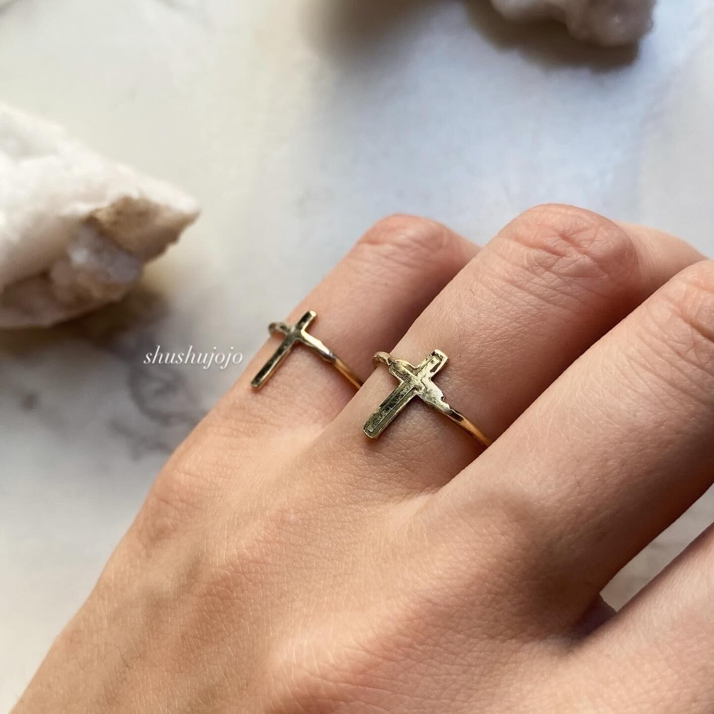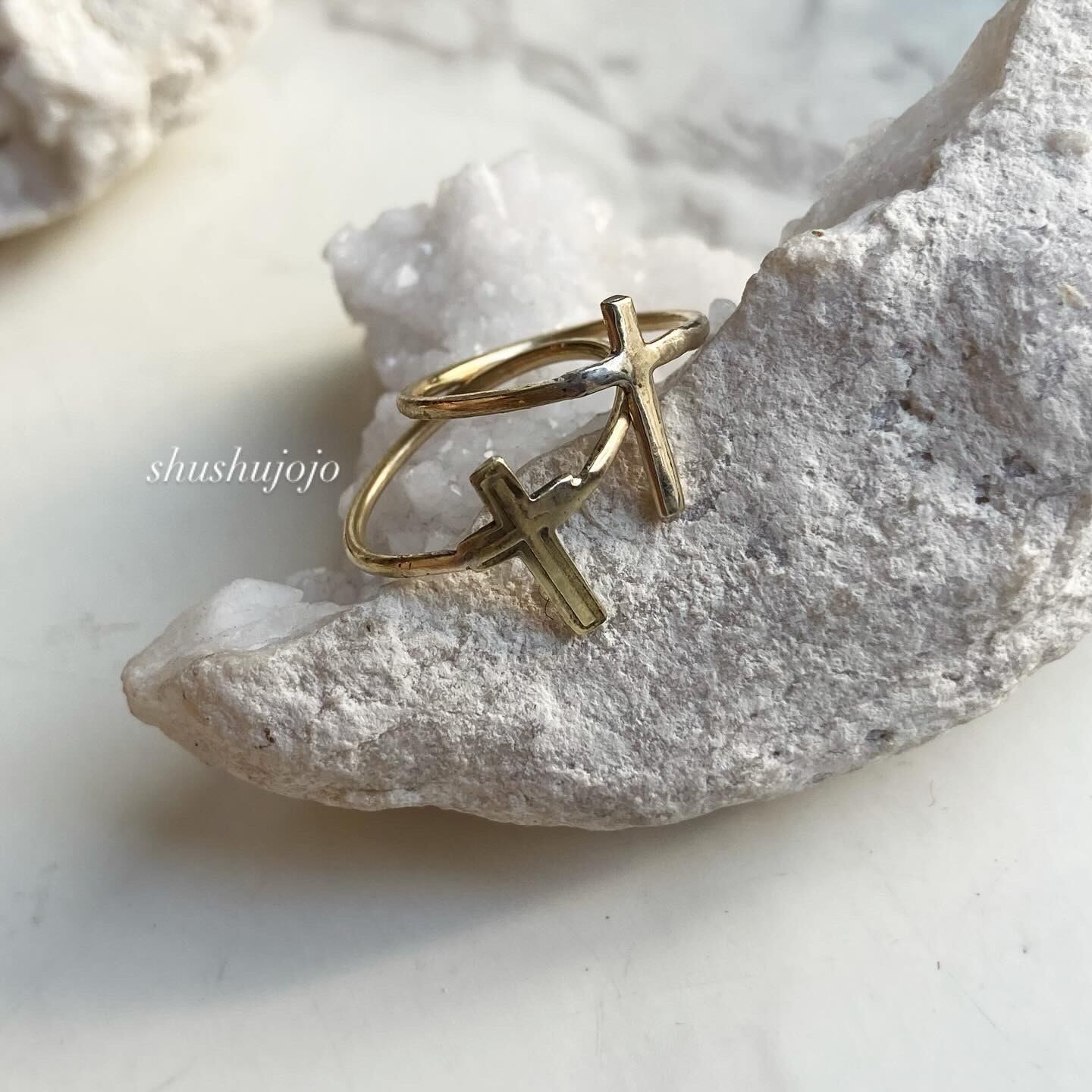 細身のリングに小さなクロスモチーフがあしらわれた華奢なリングです。