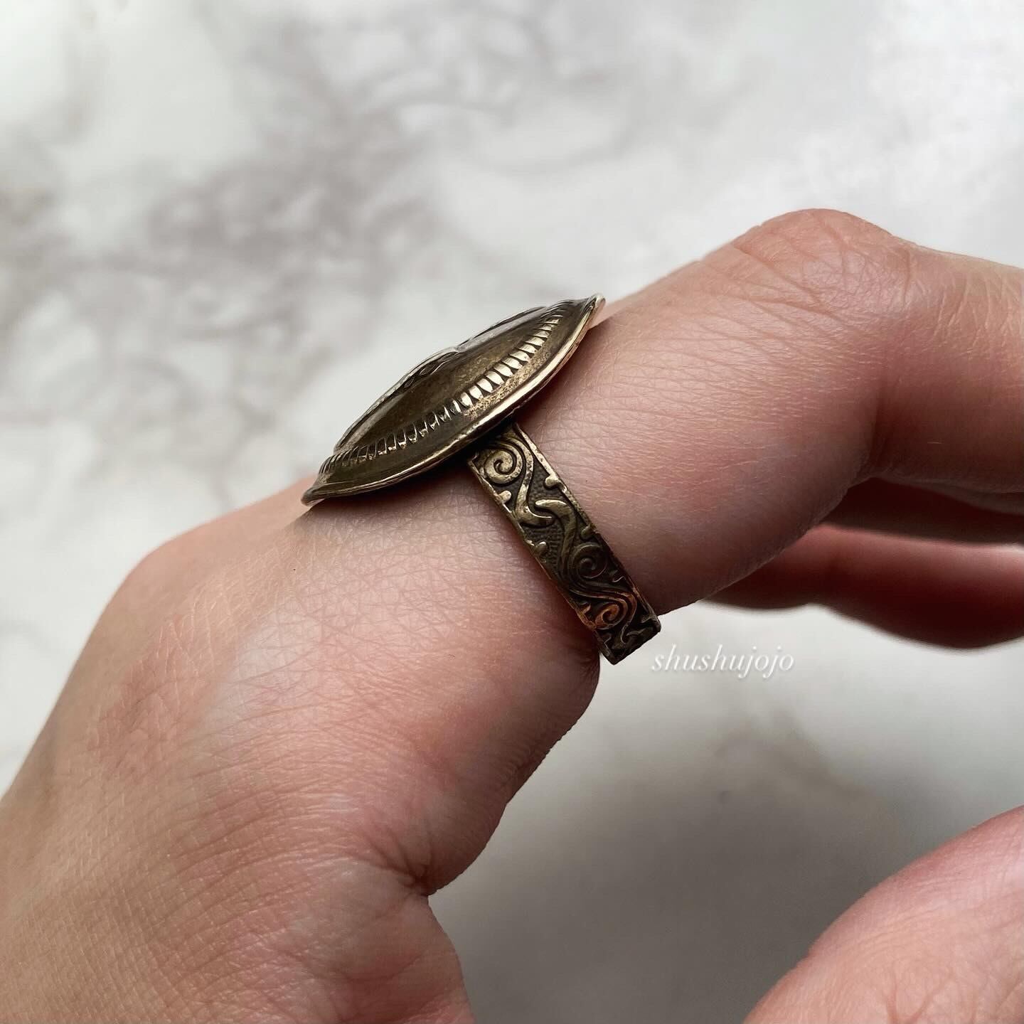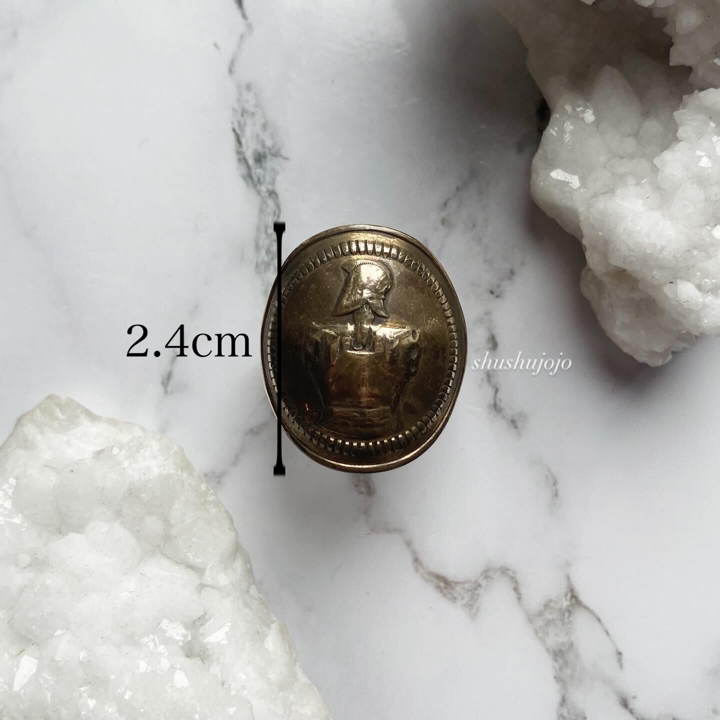 兵士のレリーフが浮かび上がる、印象的なリングです。