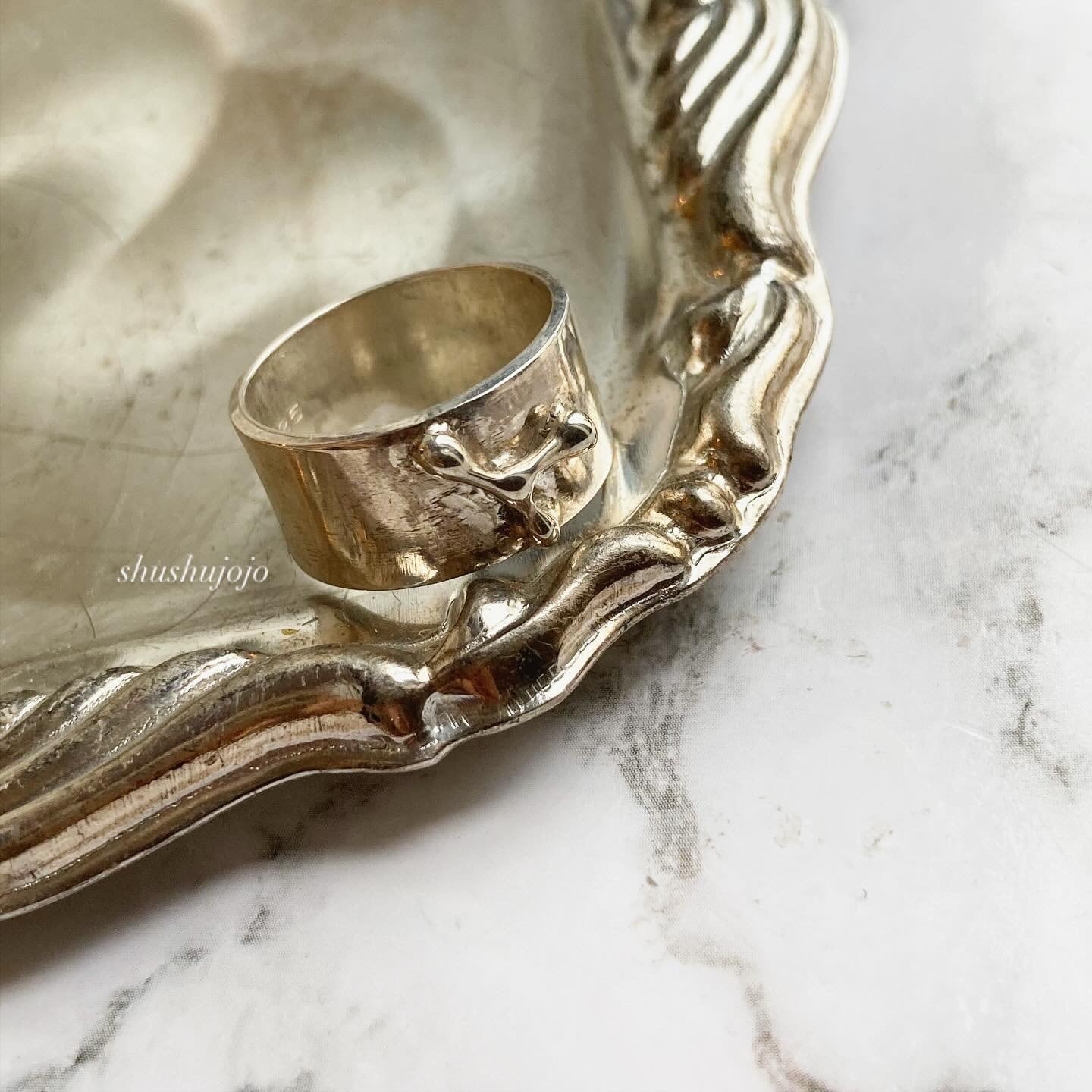 幅広のつるりとしたリングに星座マークをのせたリングです。