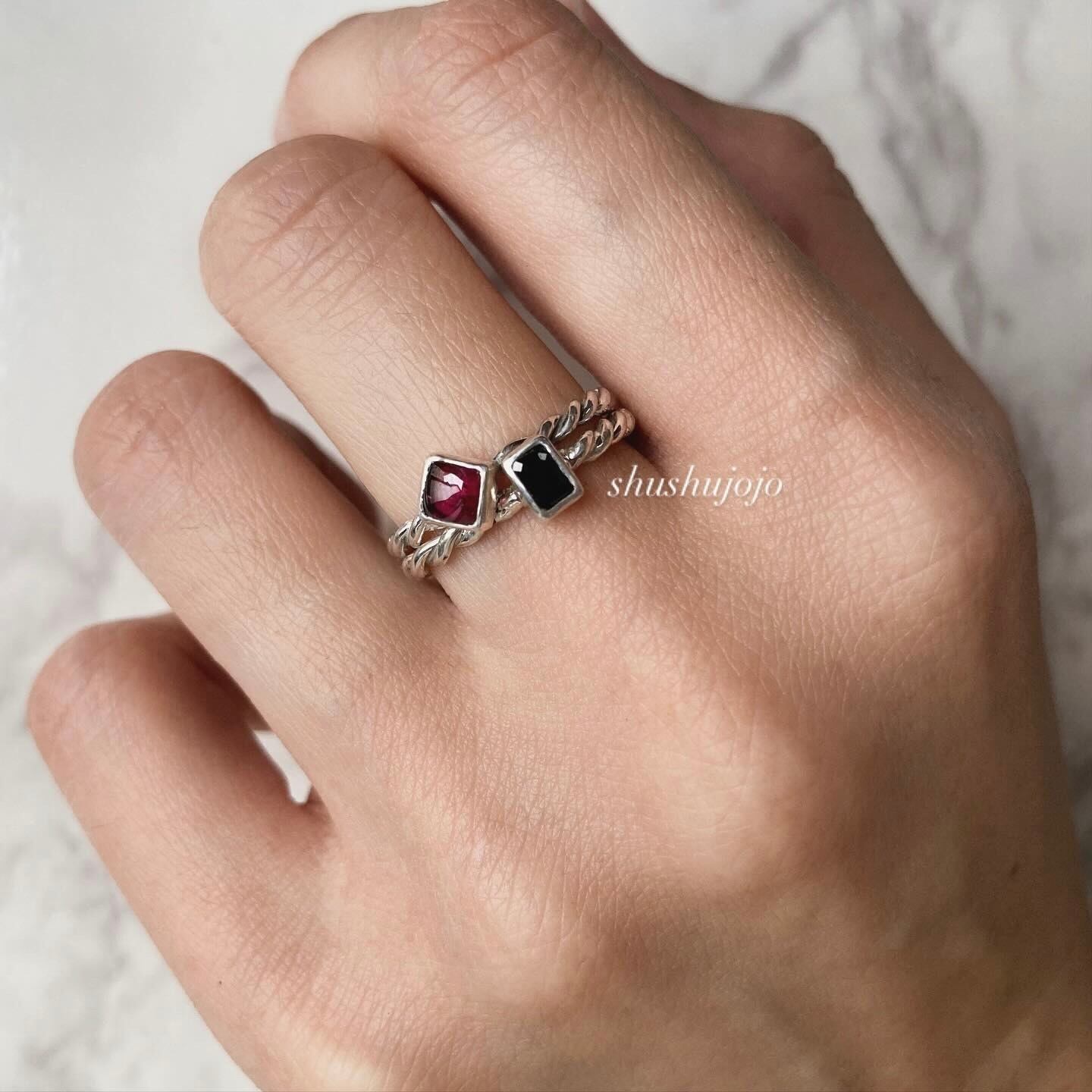 細身のリングや天然石のついたリングと