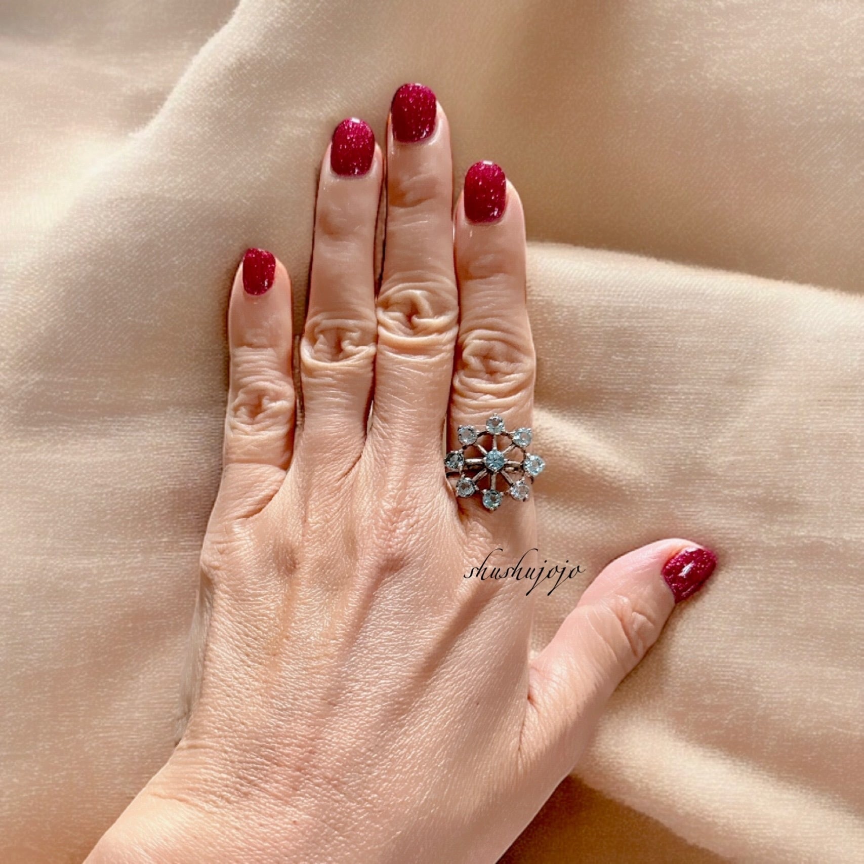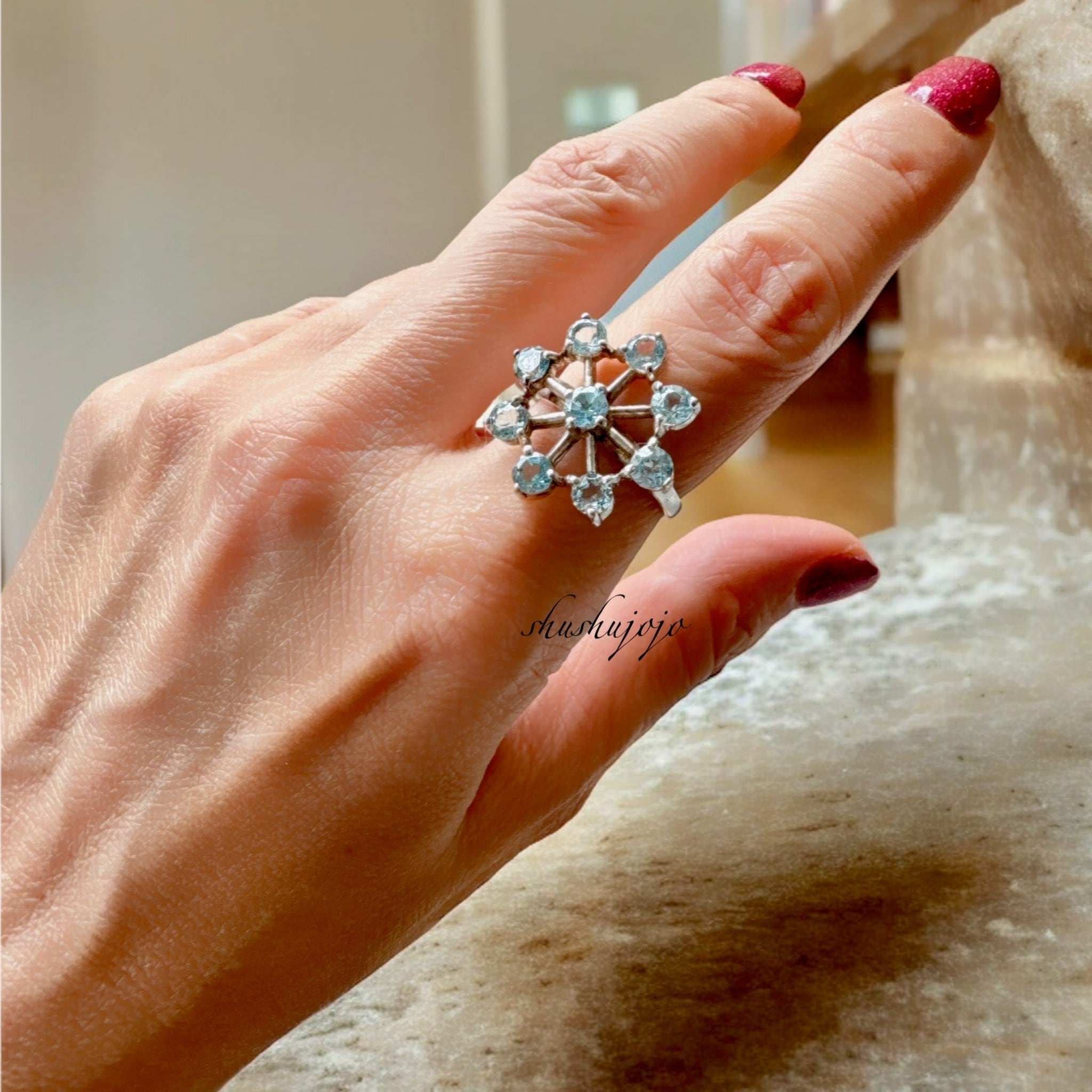 ブルートパーズがキラキラと花火のように輝くリングです。