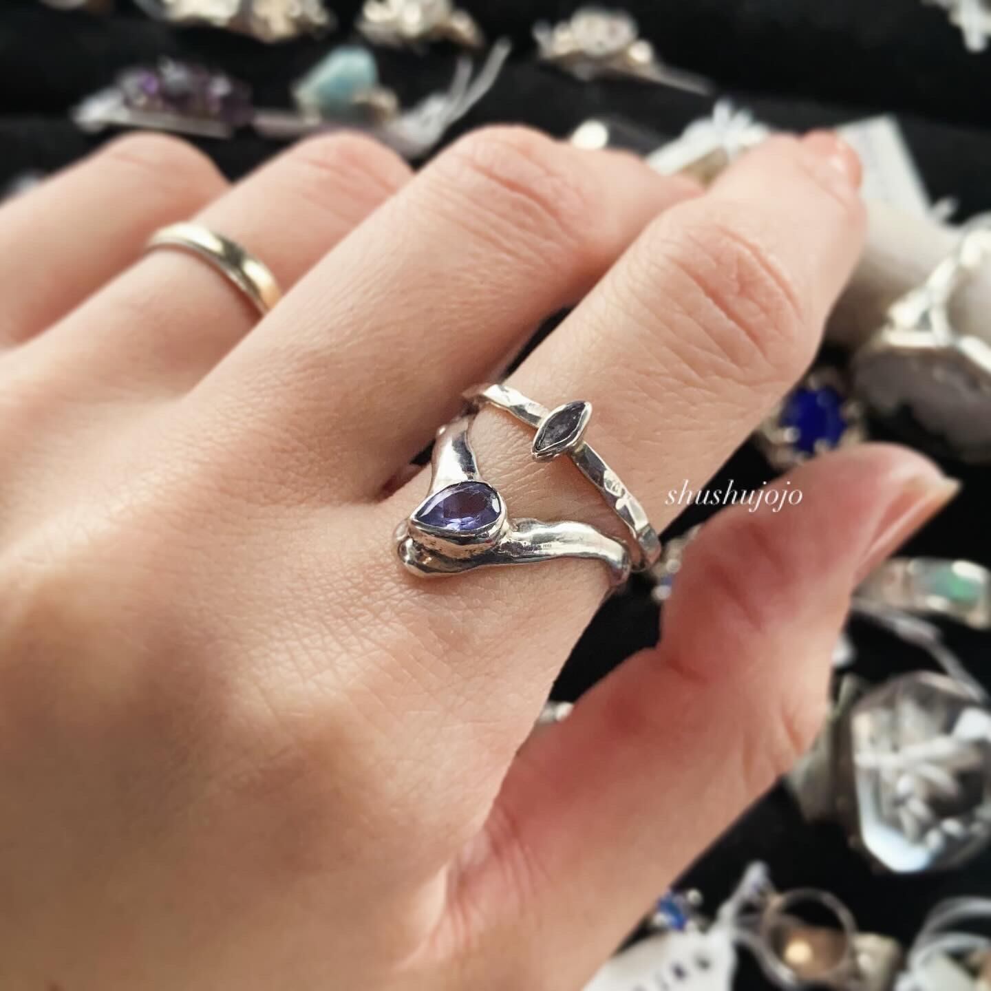 細いひし形のtanzanite ringです。