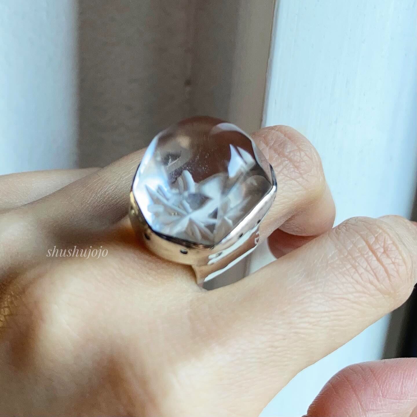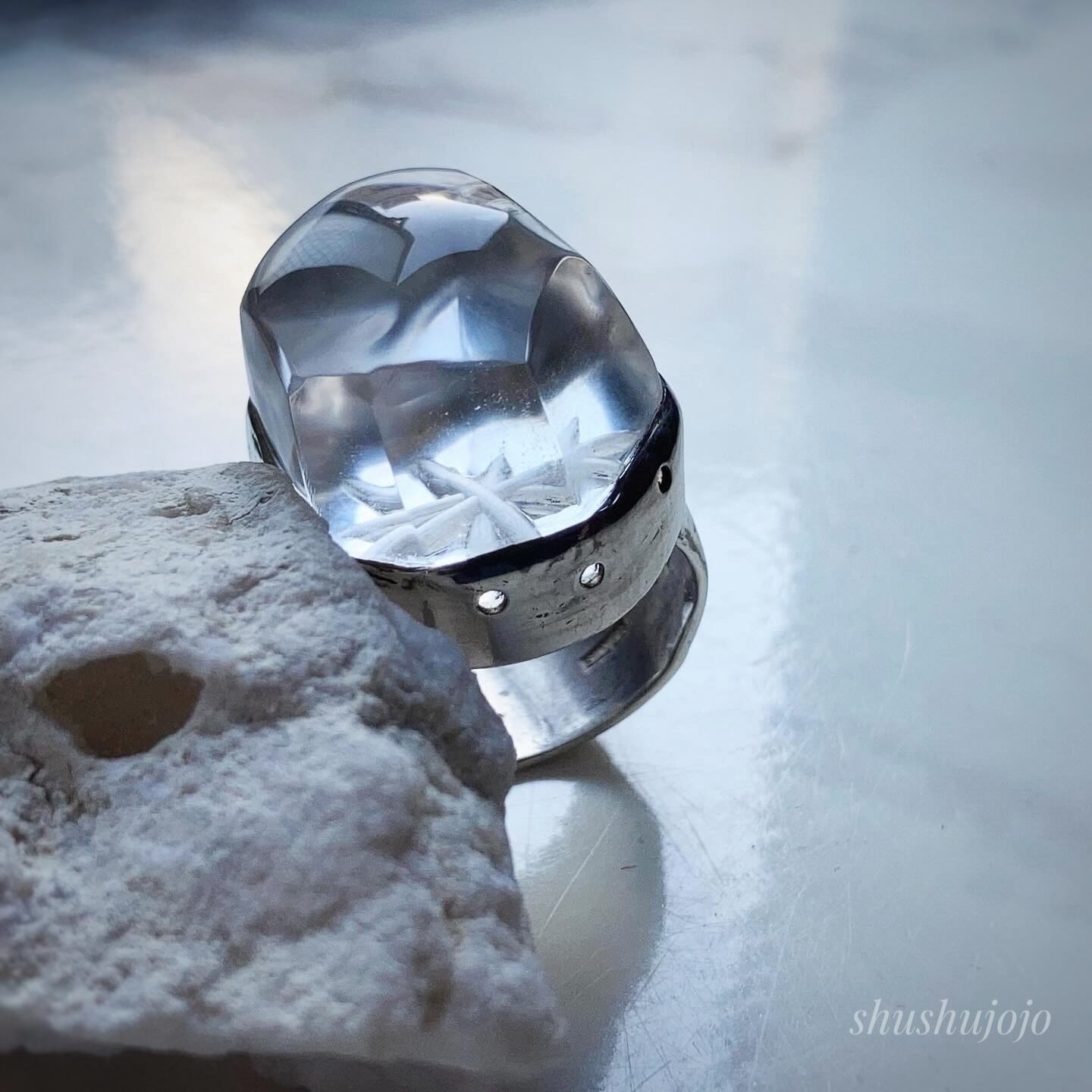 石の裏側には、ポラリスのような模様が彫られており、切子のような柄が浮かんできます。
