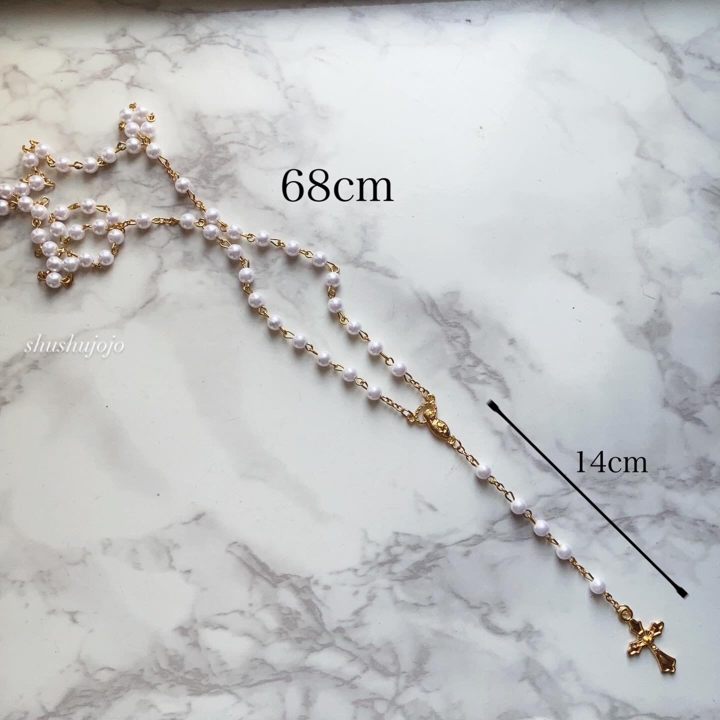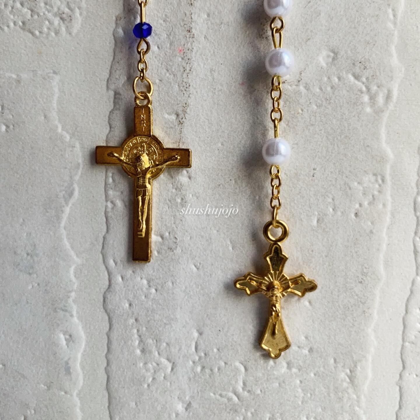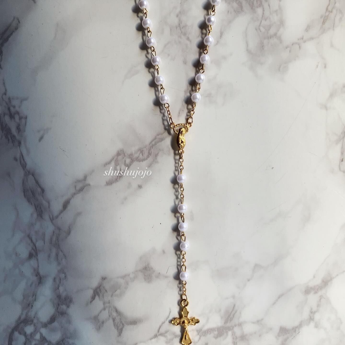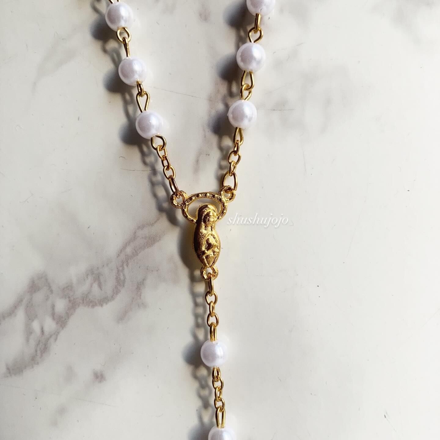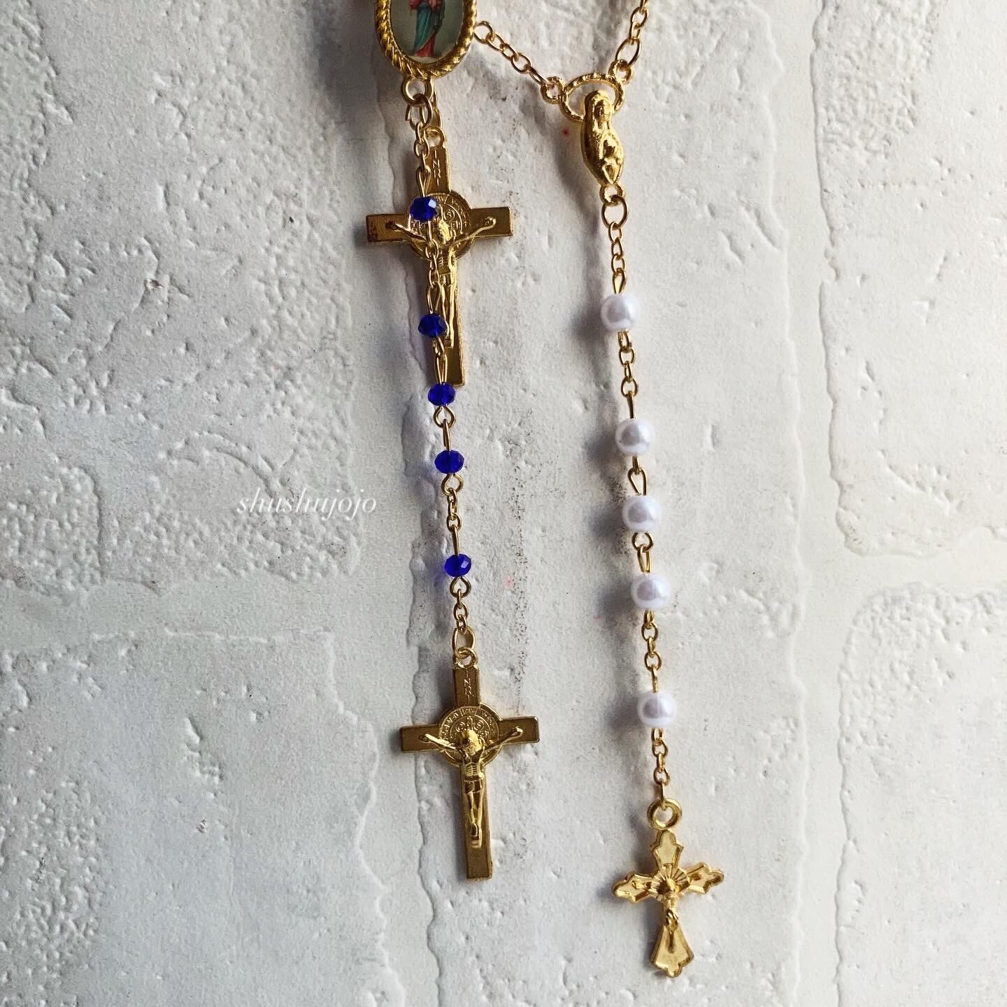 ゴールドカラーのメダイの組み合わせが華やかなロザリオです。