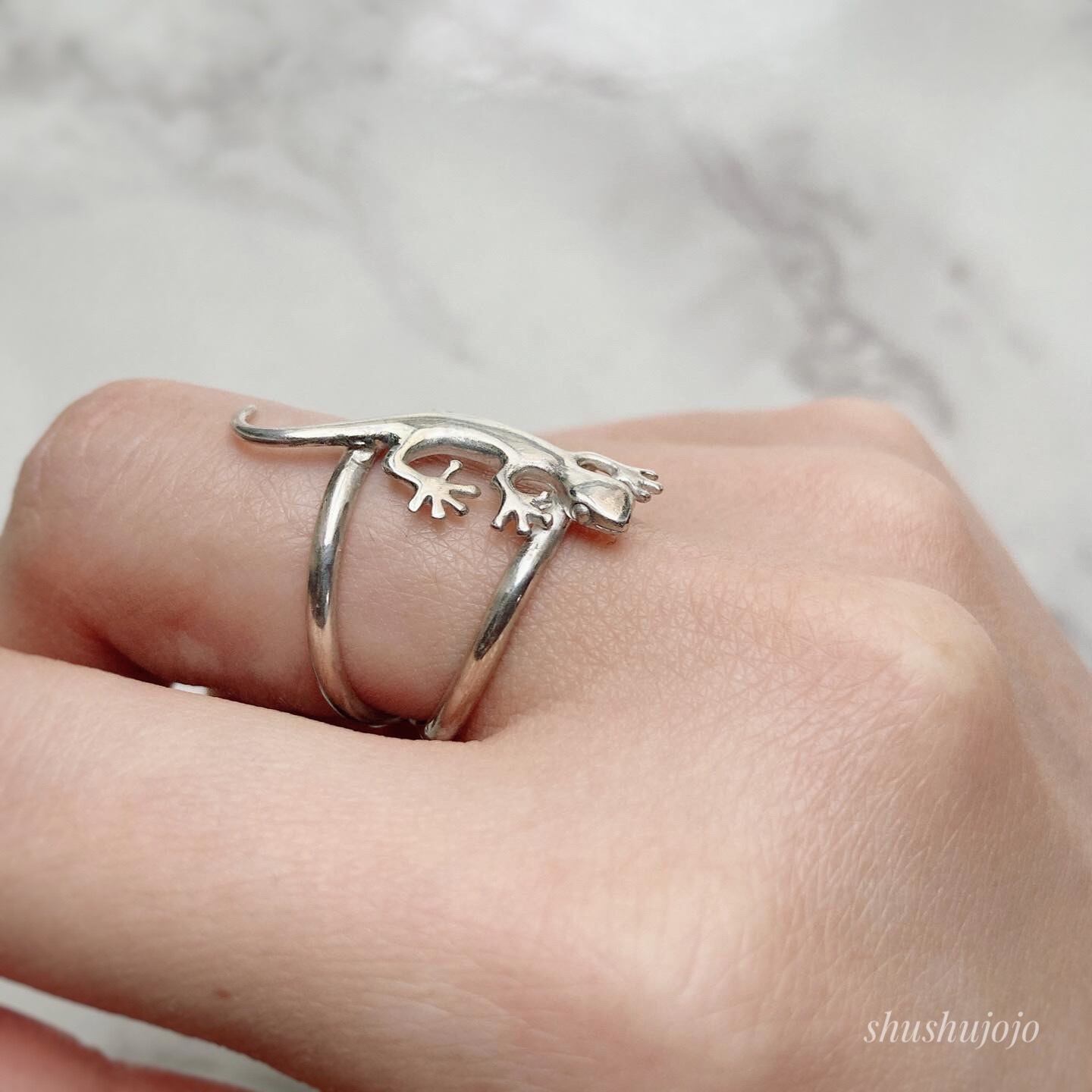 動きのあるシルエットが、ユニークで可愛らしいリングです。
