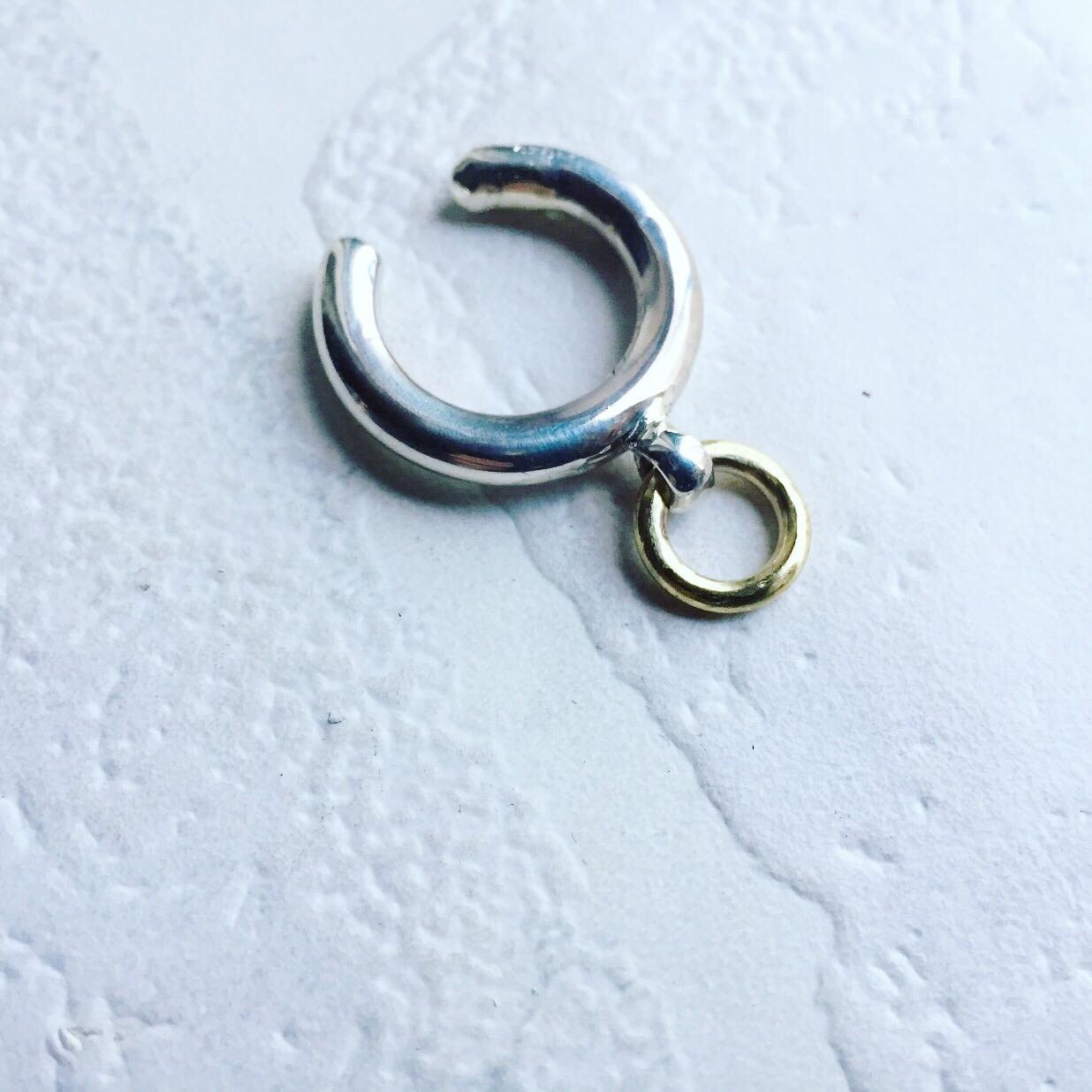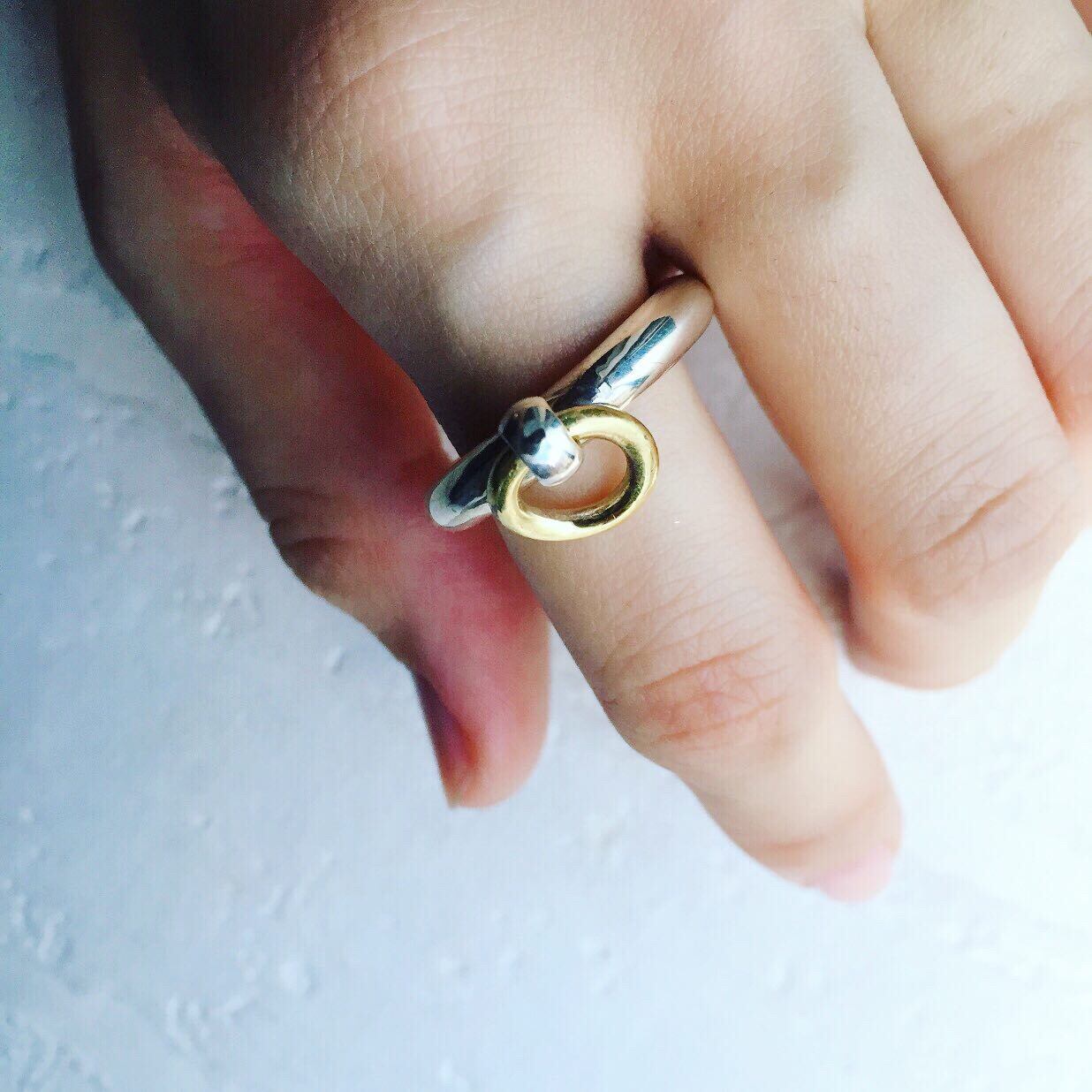 真鍮の小さなフープが付いた、コンビネーションリングです。
