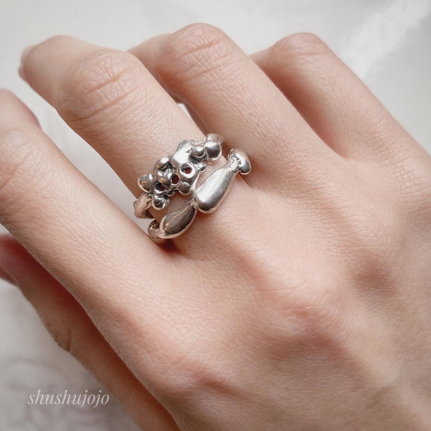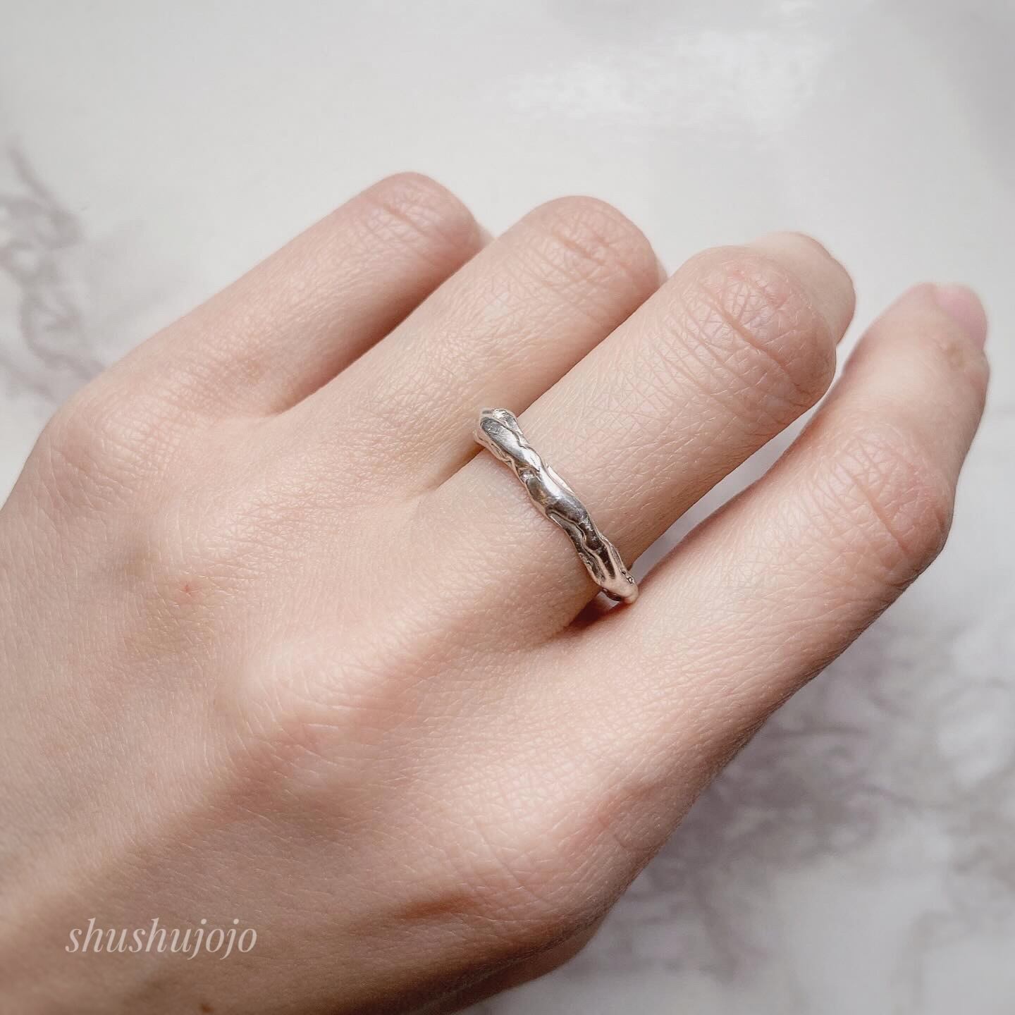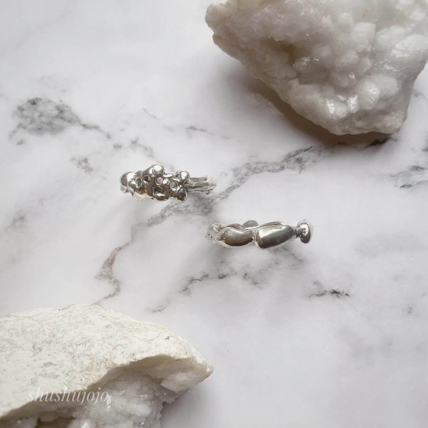シルバーが溶け出したような質感が魅力のリング。1つ1つ表情の違う、唯一無二のアクセサリーです。