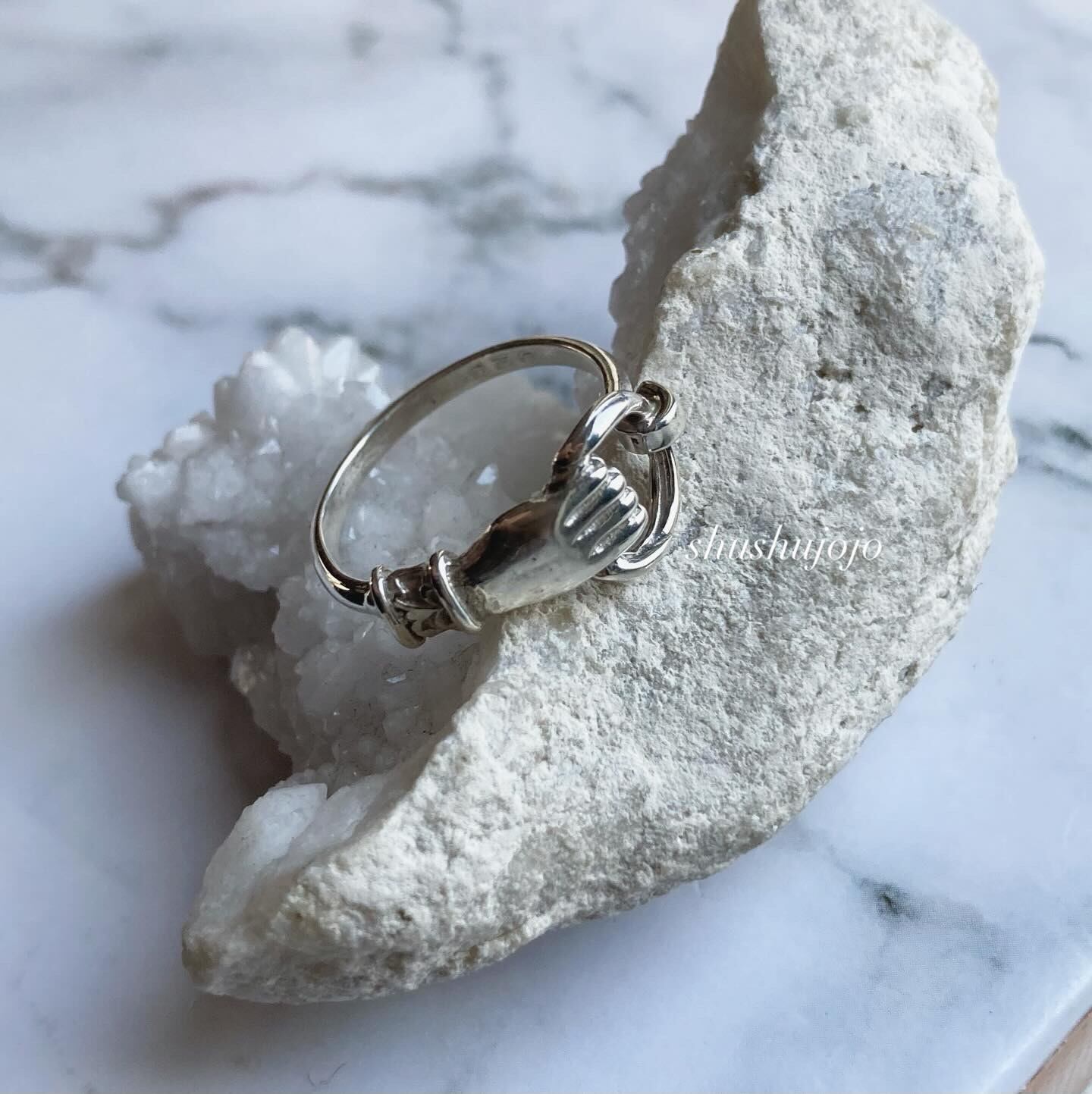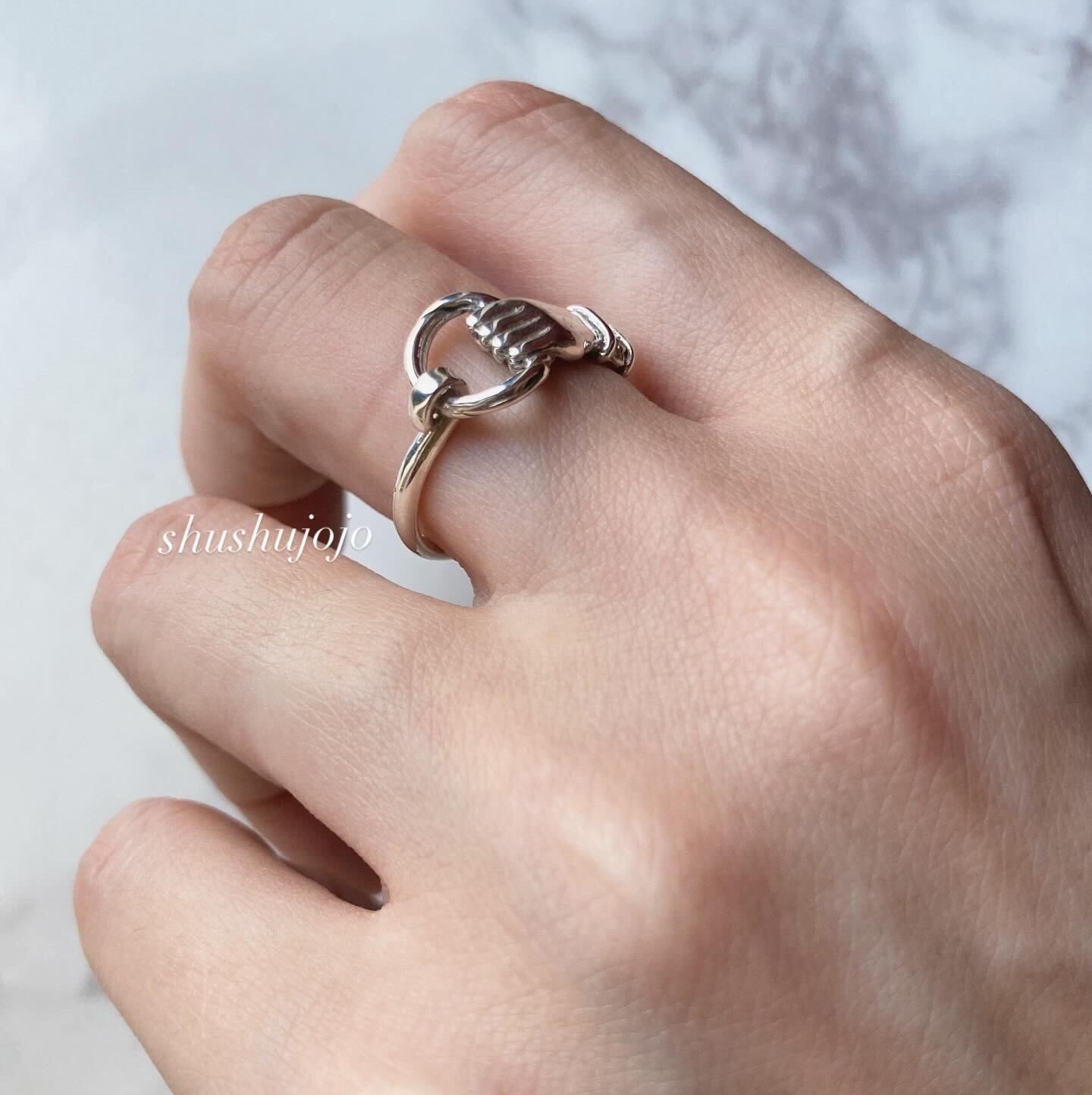 指にぐるっと巻きつくようなデザインが面白いリングです。
