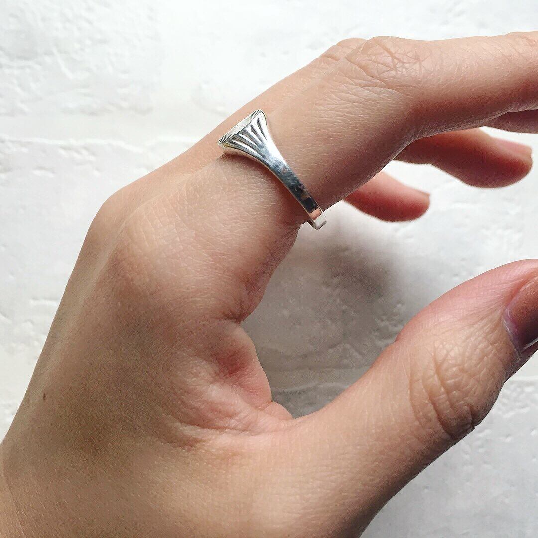 切子細工のように、細かな凹凸模様の描かれたシルバーリングです。