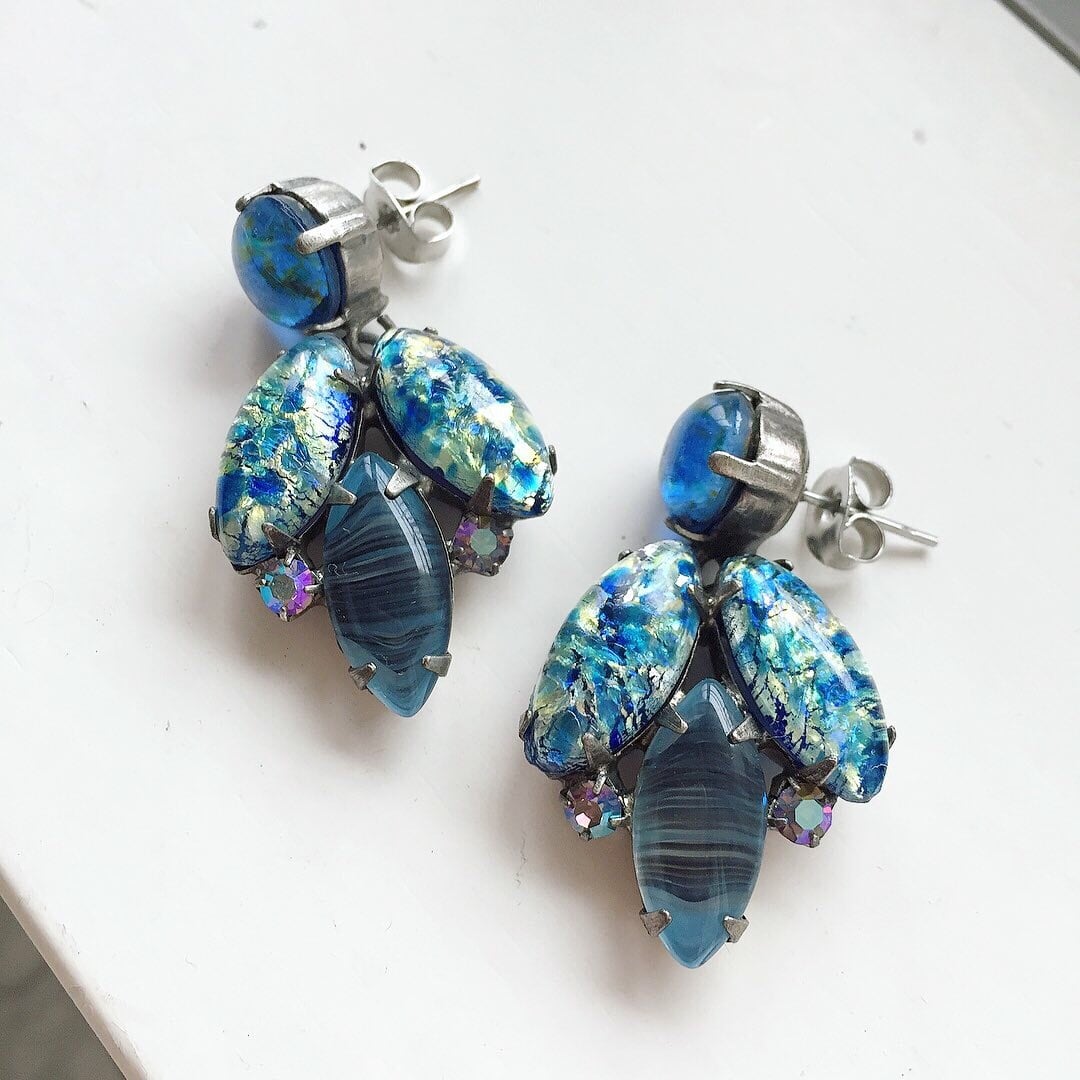 ブルートーンのガラスが組み合わさって出来たピアスです。