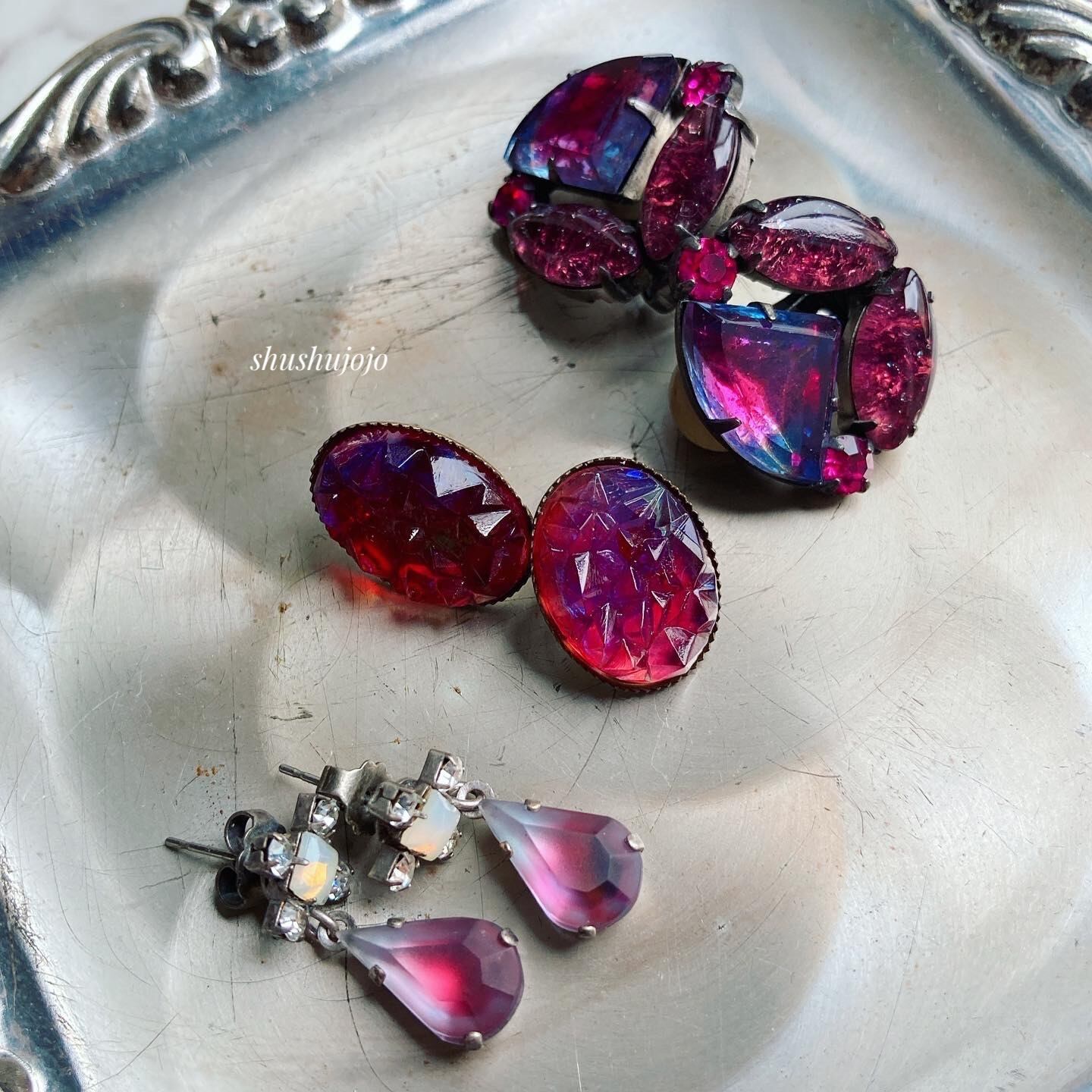ヴィンテージガラスのピアスです。