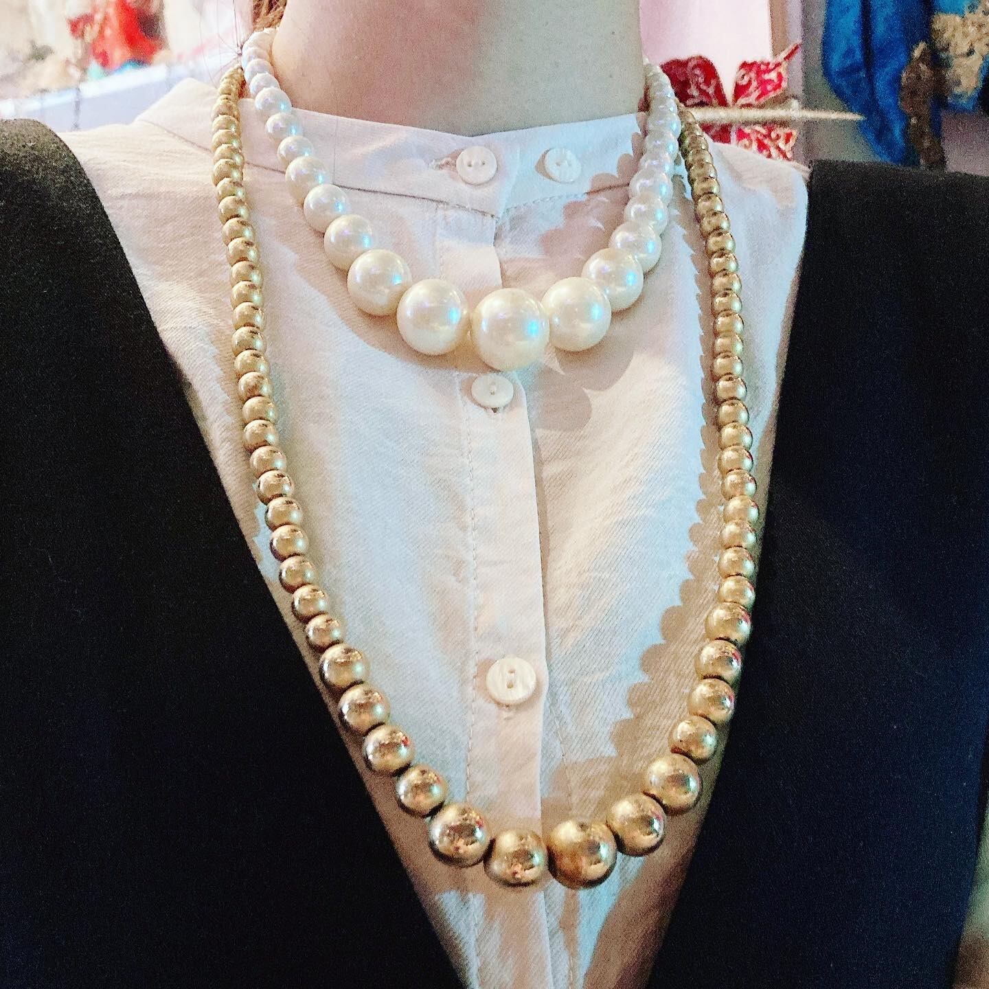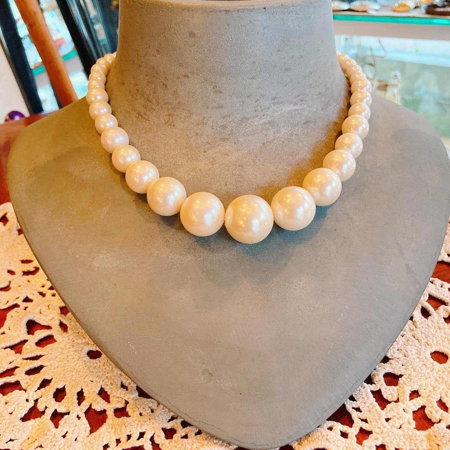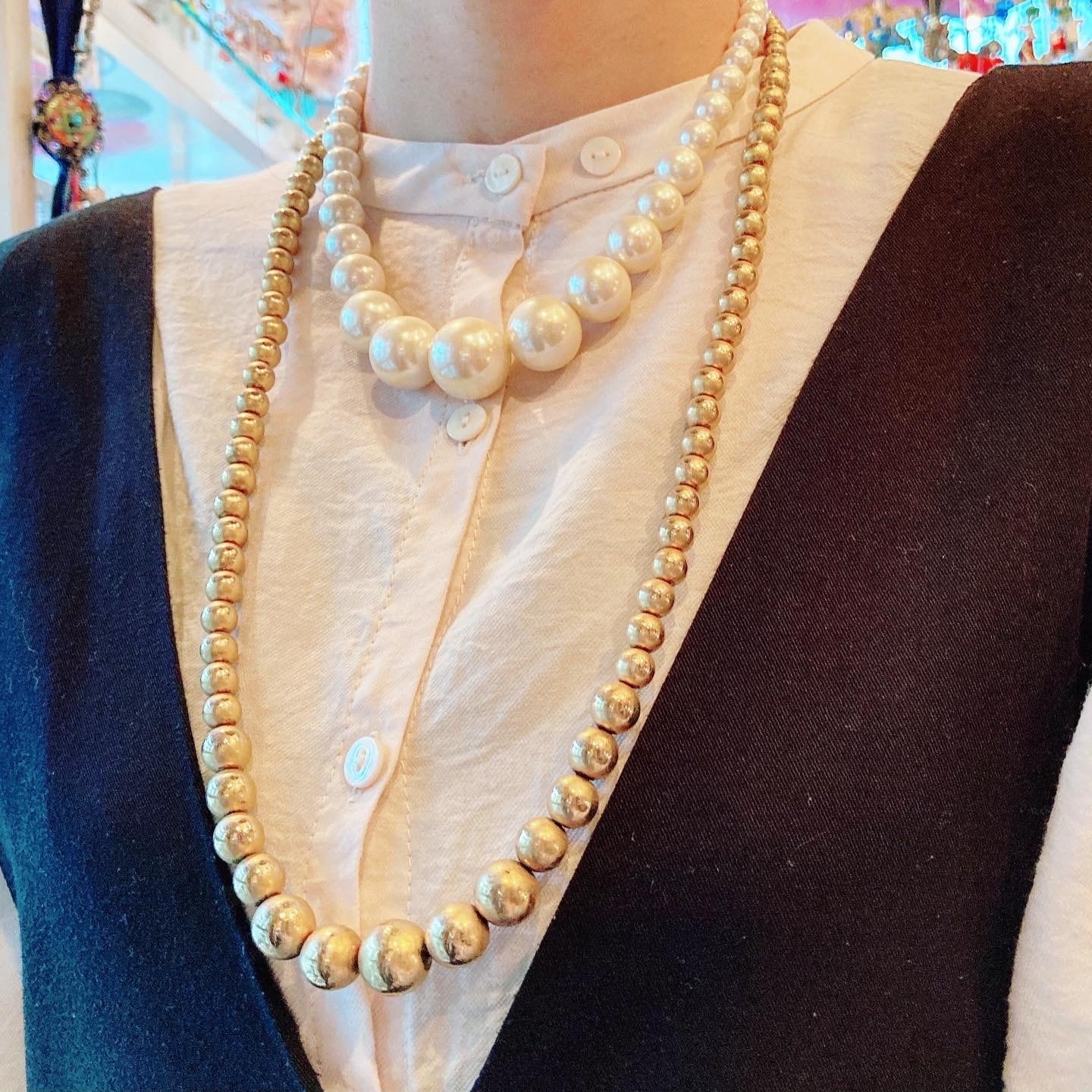 パール調のビーズが連なる、ボリューミーなヴィンテージネックレスです。