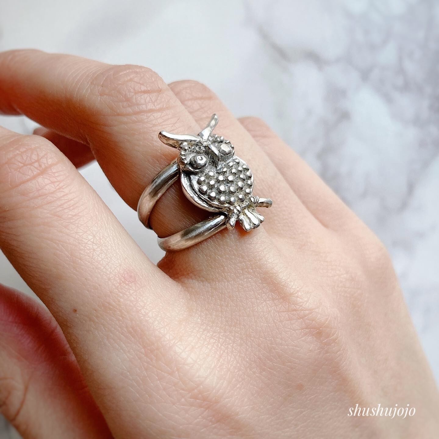 梟モチーフが目を引くシルバーリングです。