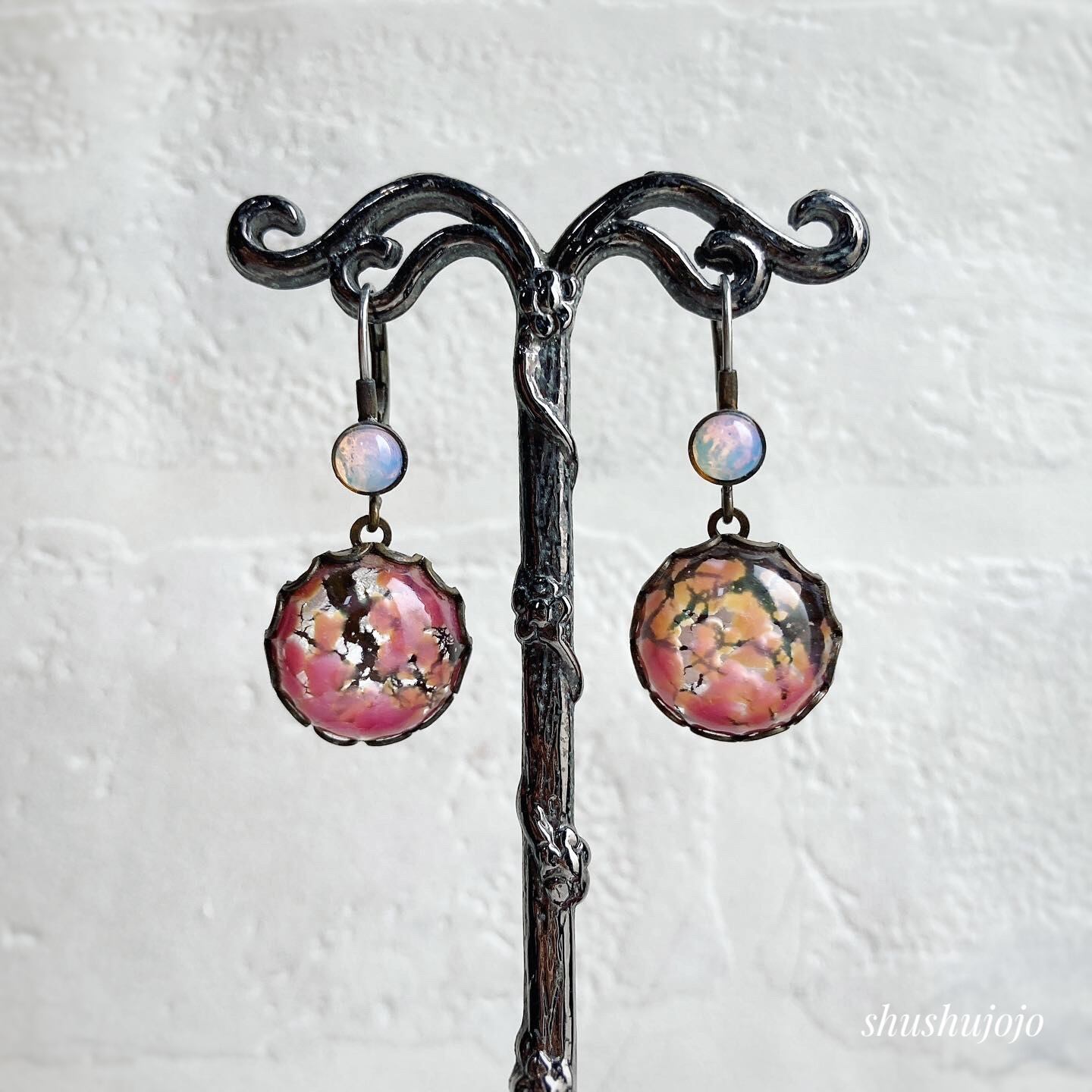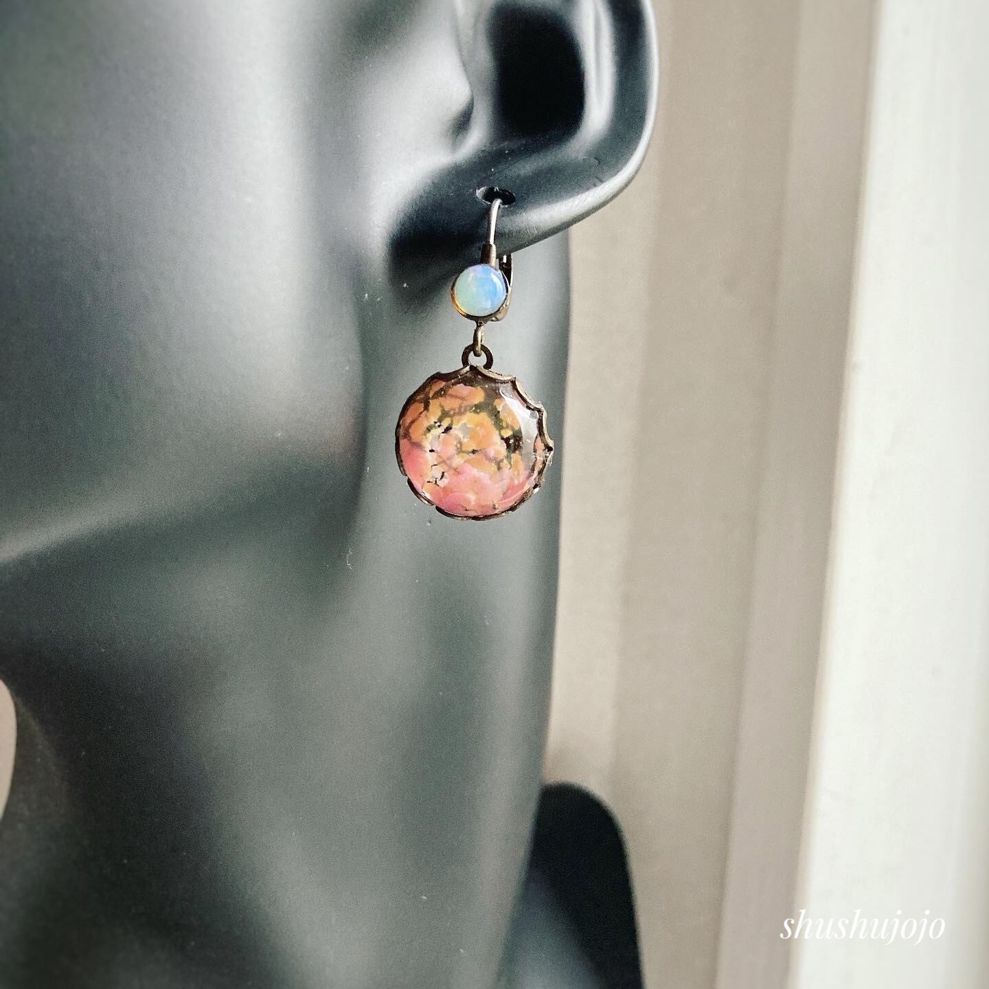 ドーム型の、ぷっくり ツヤっとしたカボションが揺れるデザインです。