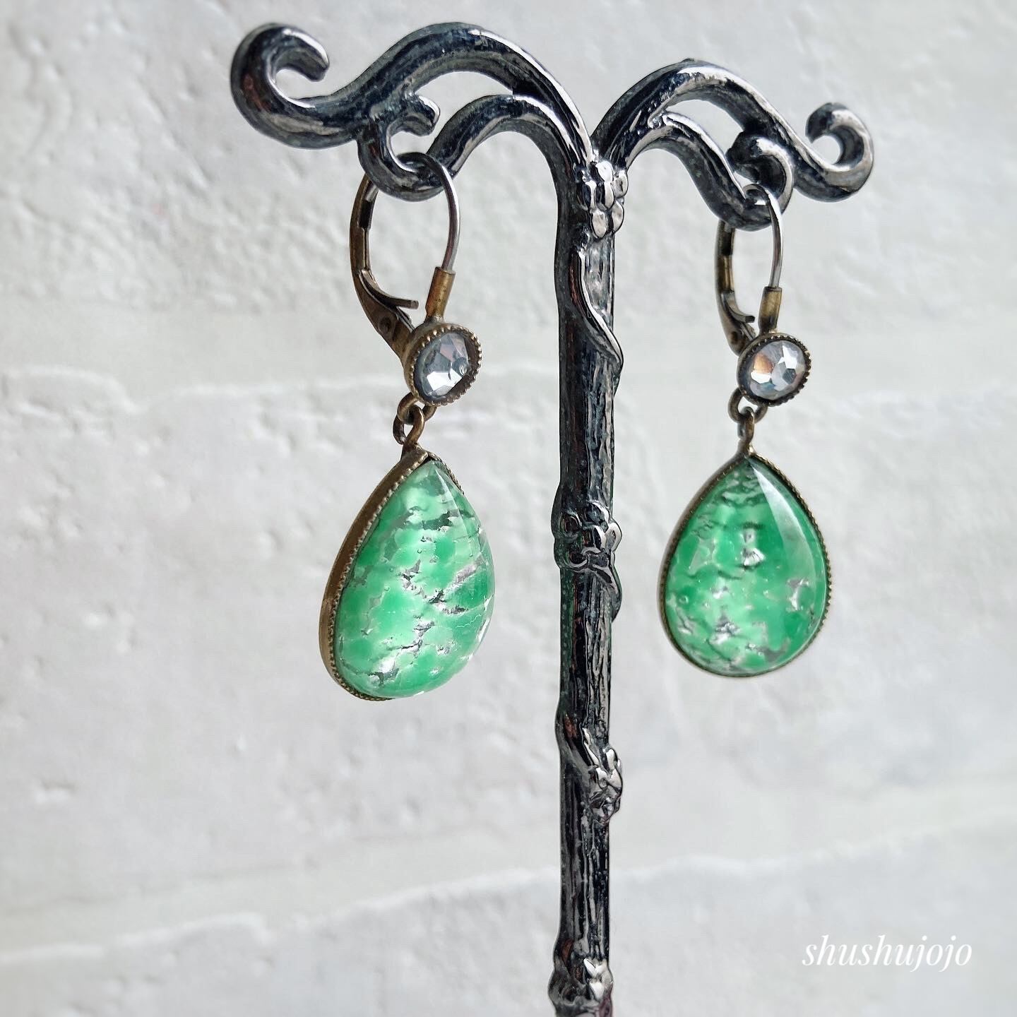 ヴィンテージガラスのピアスです。