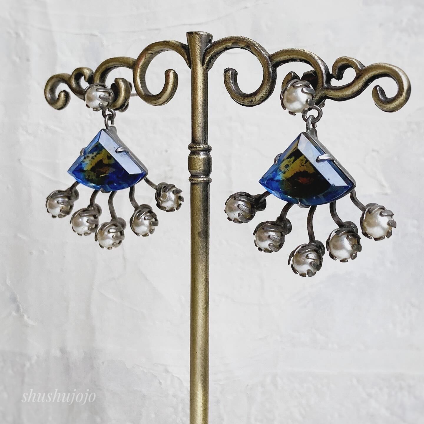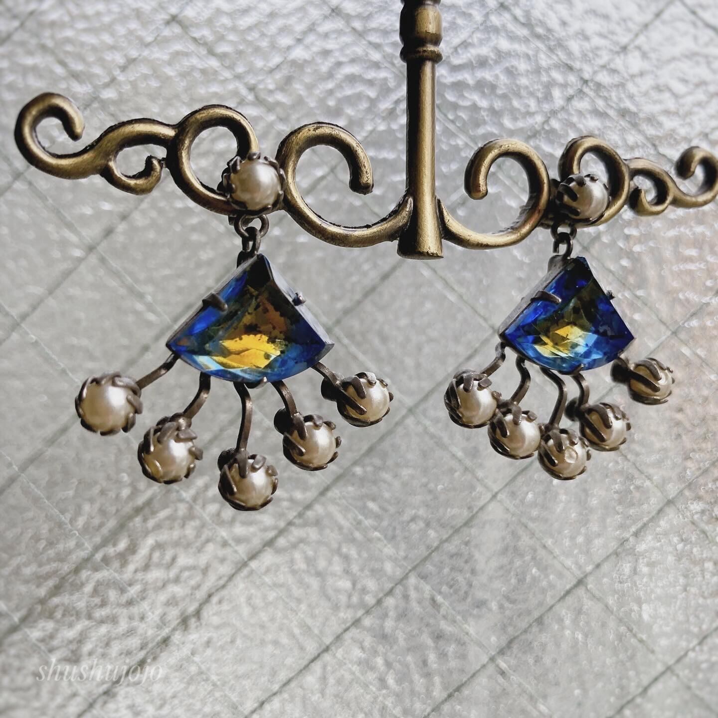 ヴィンテージガラスのピアスです。