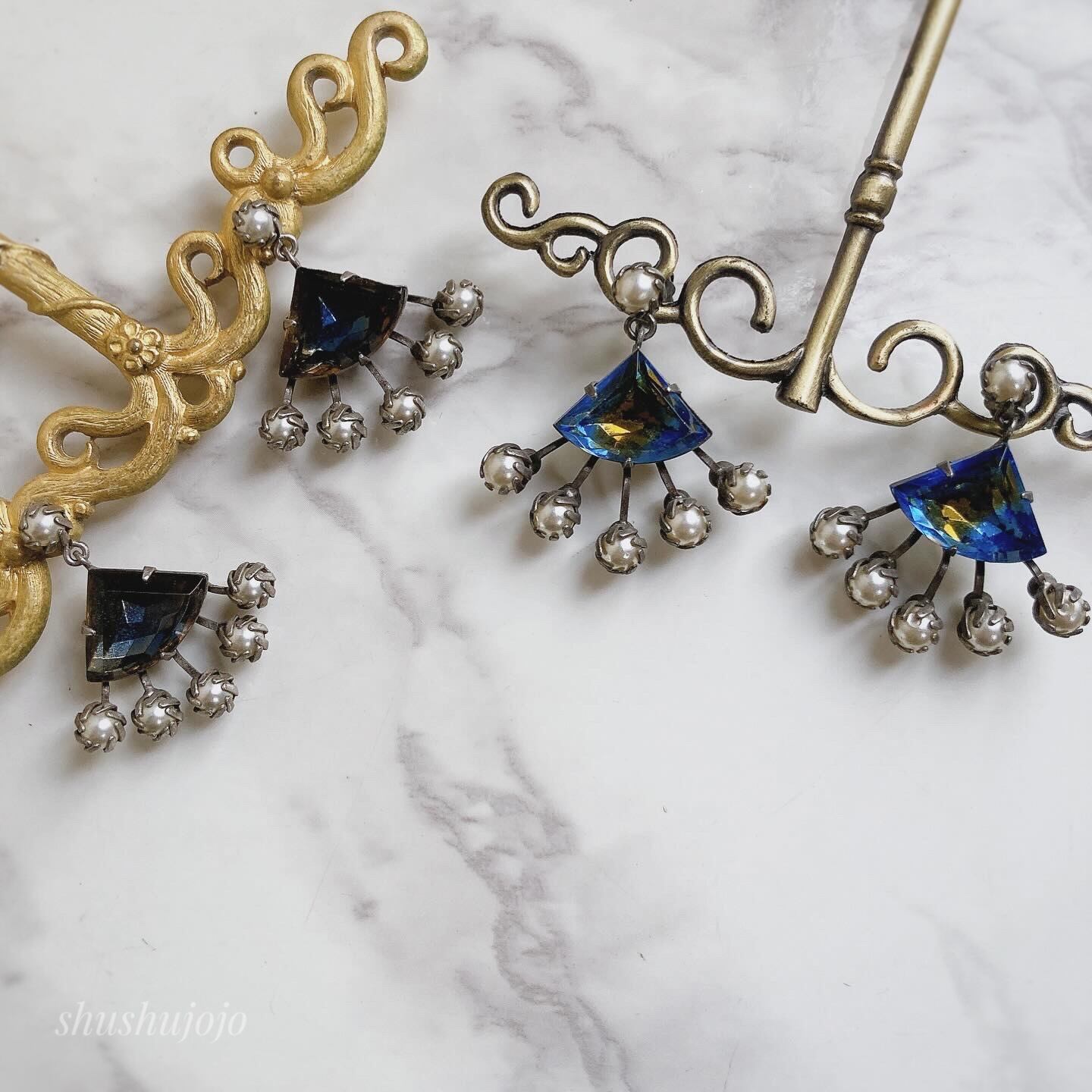 ガラスやパール飾りの輝きが華やかで、上品さも兼ね備えています。