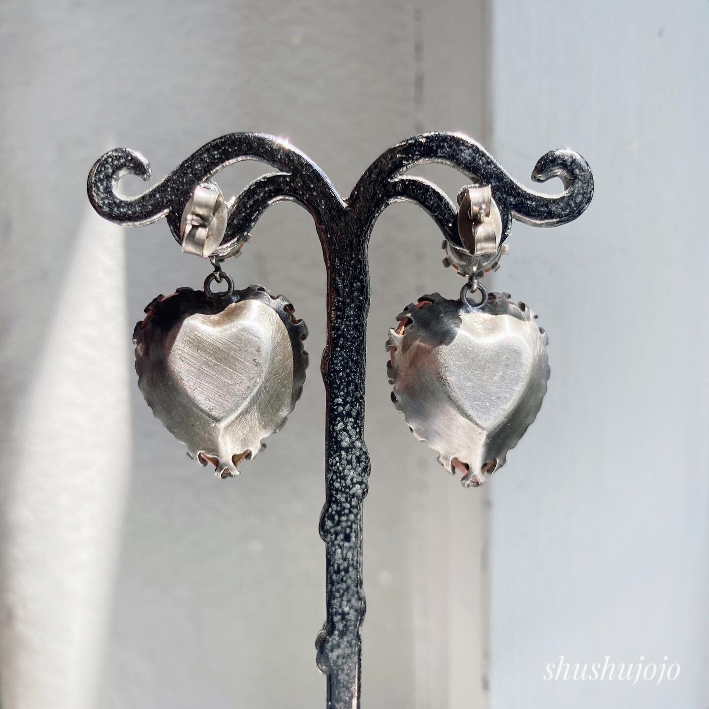 ハート形のvintage czech glassのピアスです。