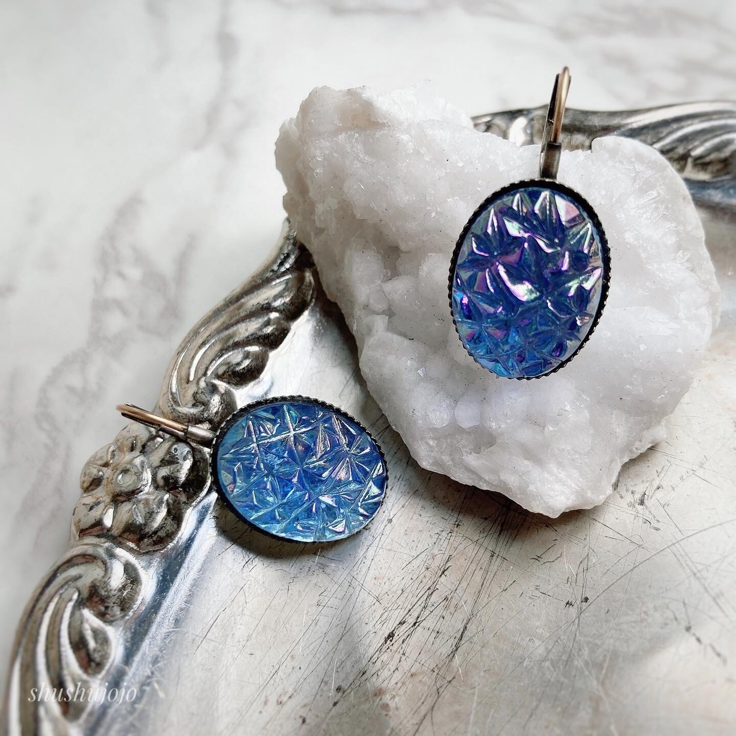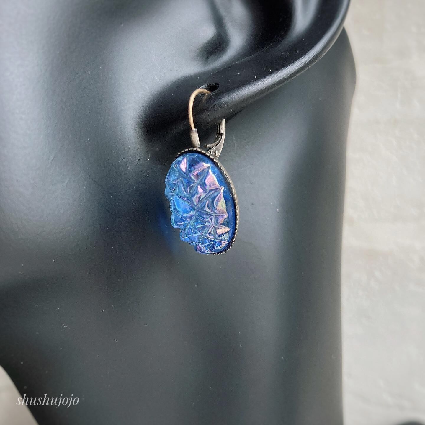 凸凹の表面がユニークなヴィンテージガラスのピアスです。