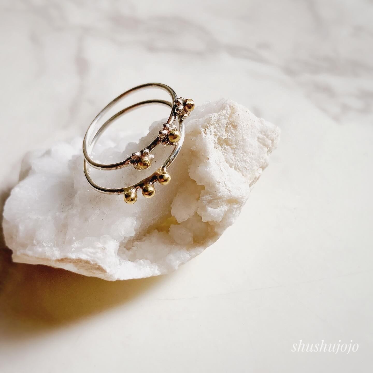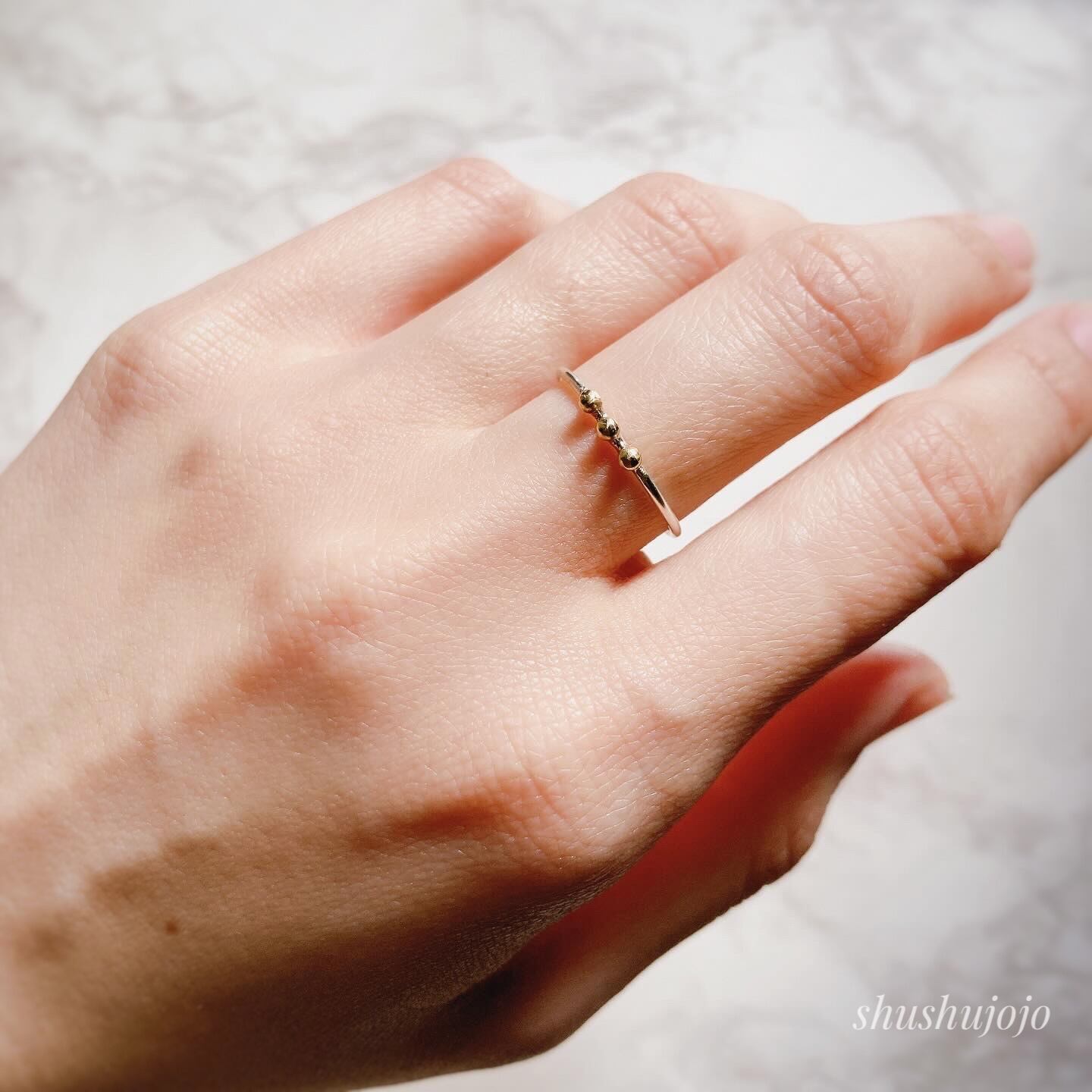 重ね付けしてアレンジを楽しむのもおすすめの万能リングです。