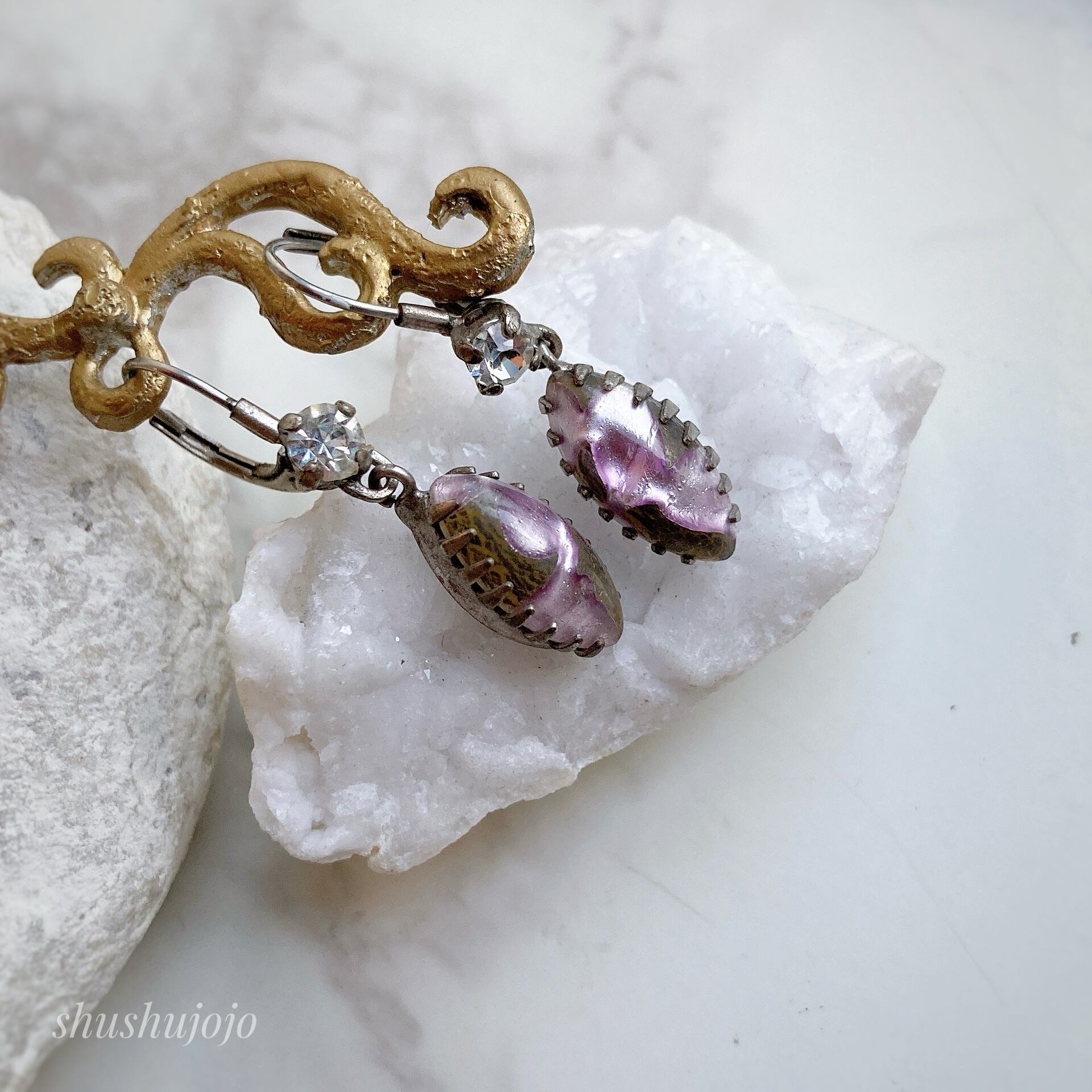 ピアス上部の小粒のラインストーンがさり気ないアクセントになっています。